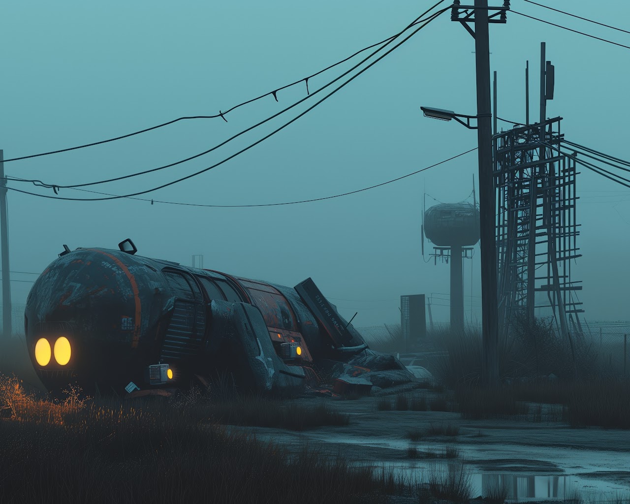 Ai Art, Illustration, Dark, Rural, Cyberpunk 5K Phone Wallpaper