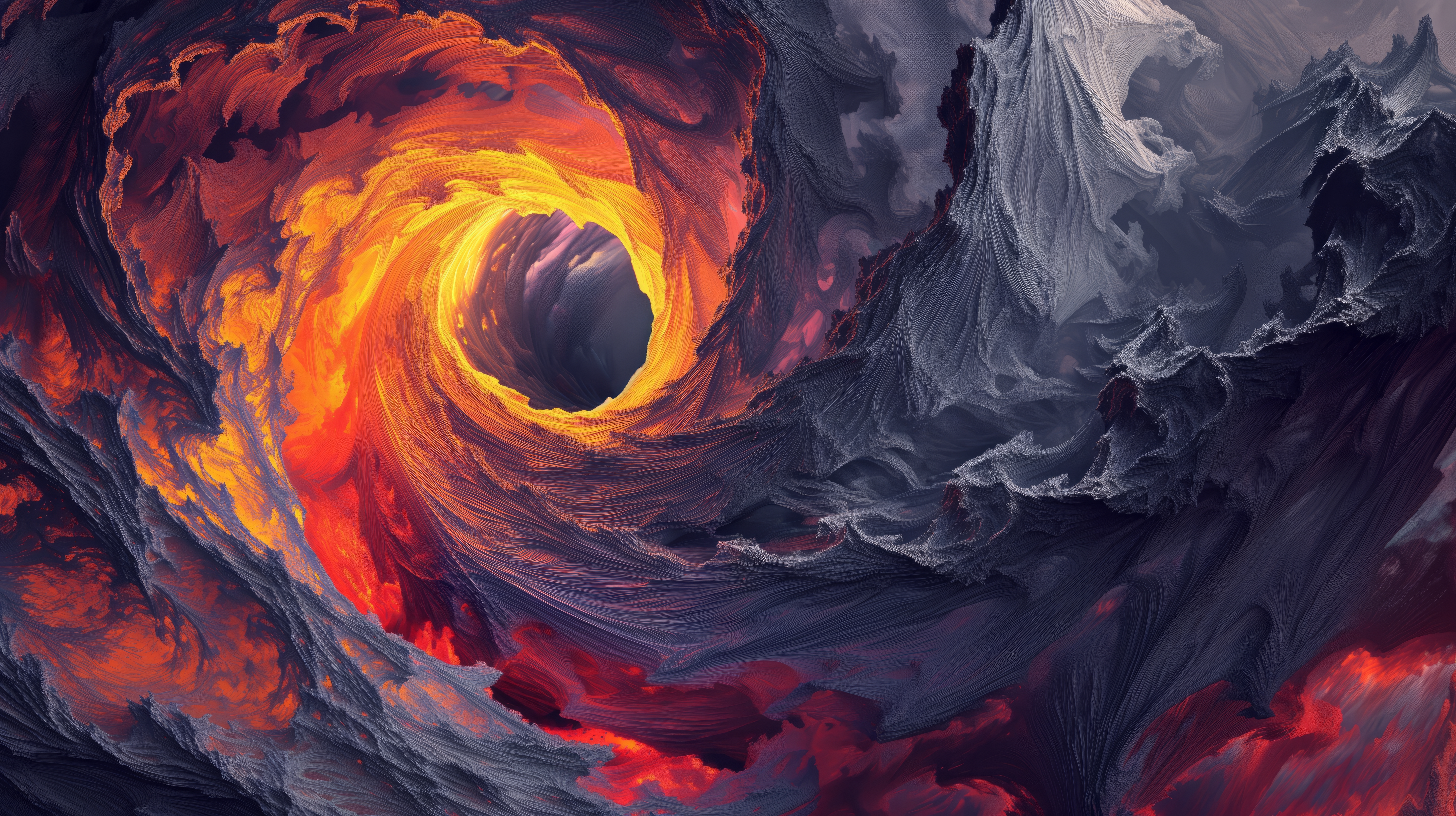Ai Art, Illustration, Fire, Swirls, Abstract 5K Desktop and Mobile Wallpaper Background with a maximum resolution of 5824x3264 px.