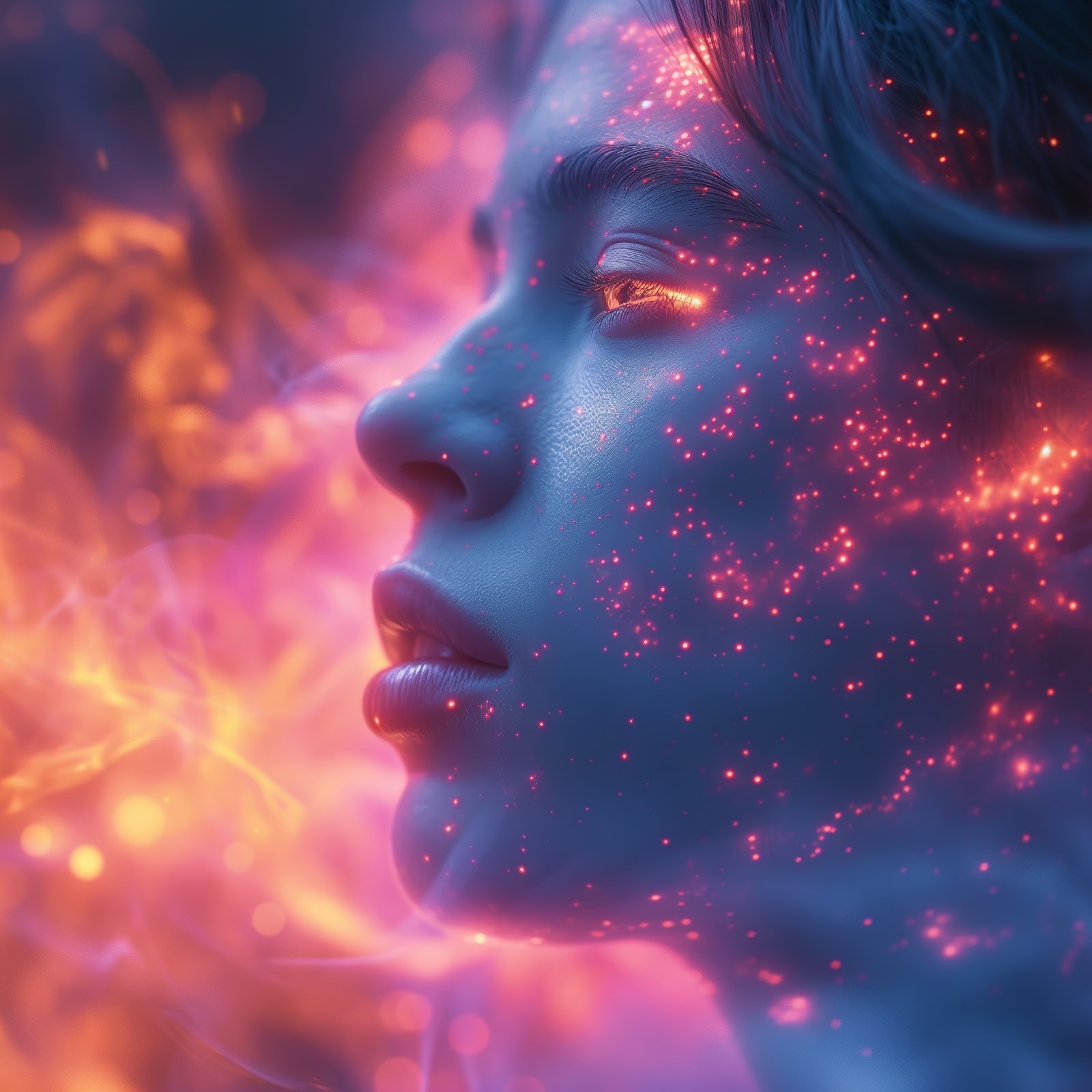 Ai Art, Illustration, Fire, Women, Face 5K Desktop Wallpaper