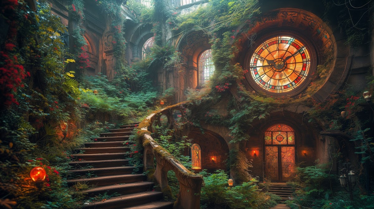 Ai Art, Illustration, Greenery, Plants, Stairs 5K Desktop Wallpaper