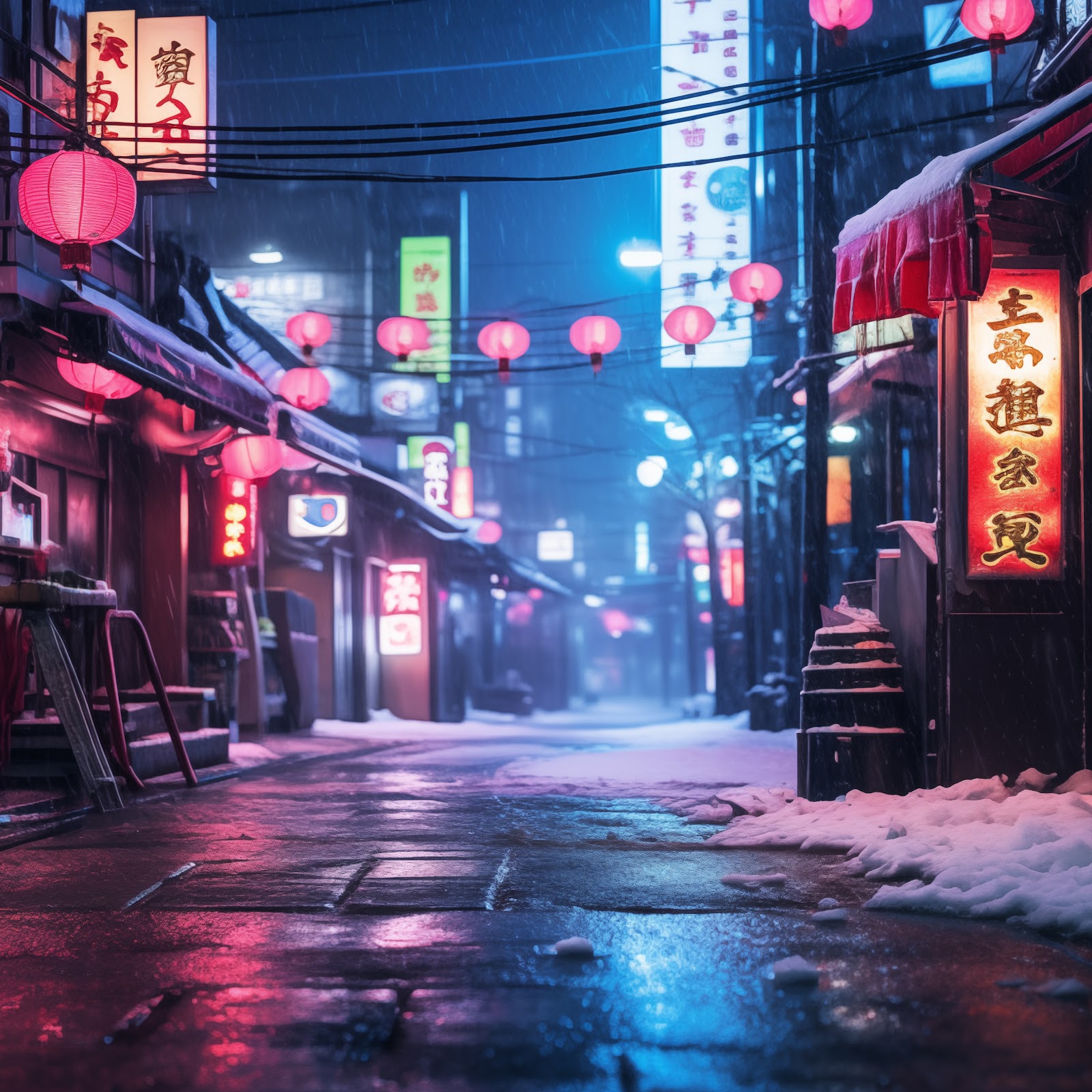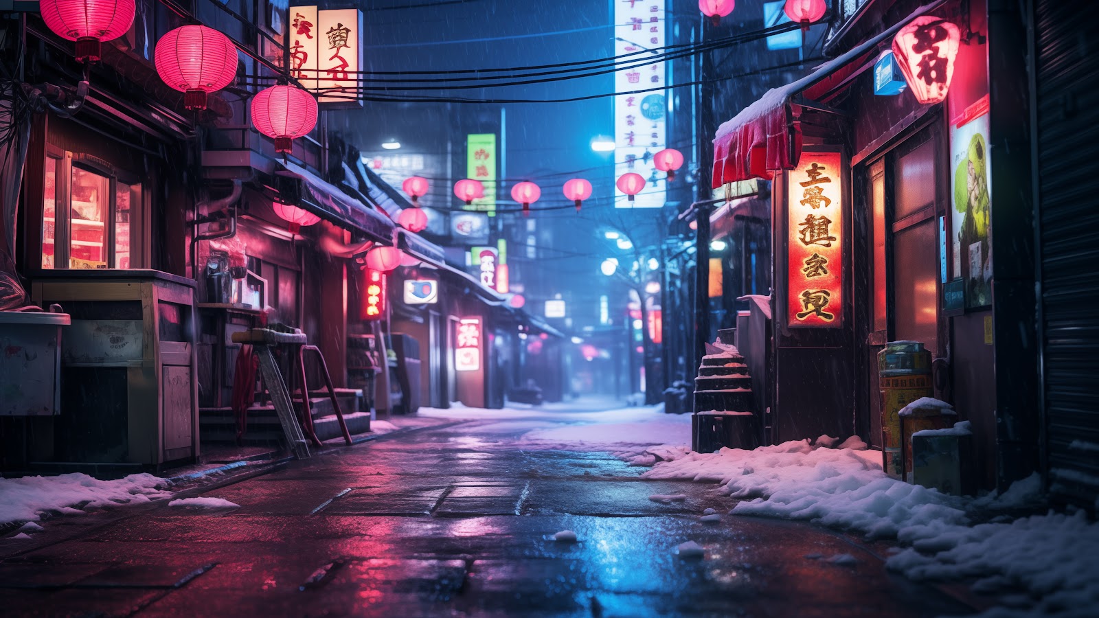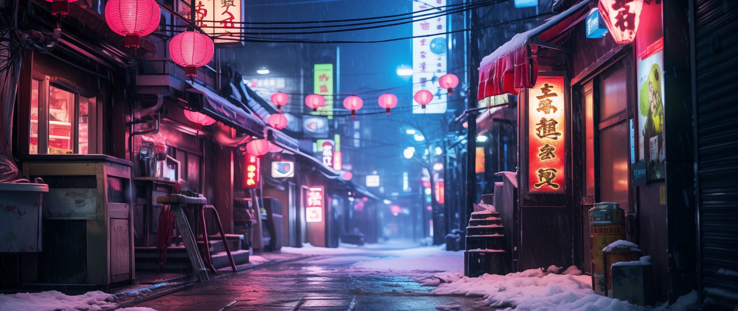 Ai Art, Japan, Tokyo, Alleyway, Neon 5K Desktop and Mobile Wallpaper Background with a maximum resolution of 5824x3264 px.