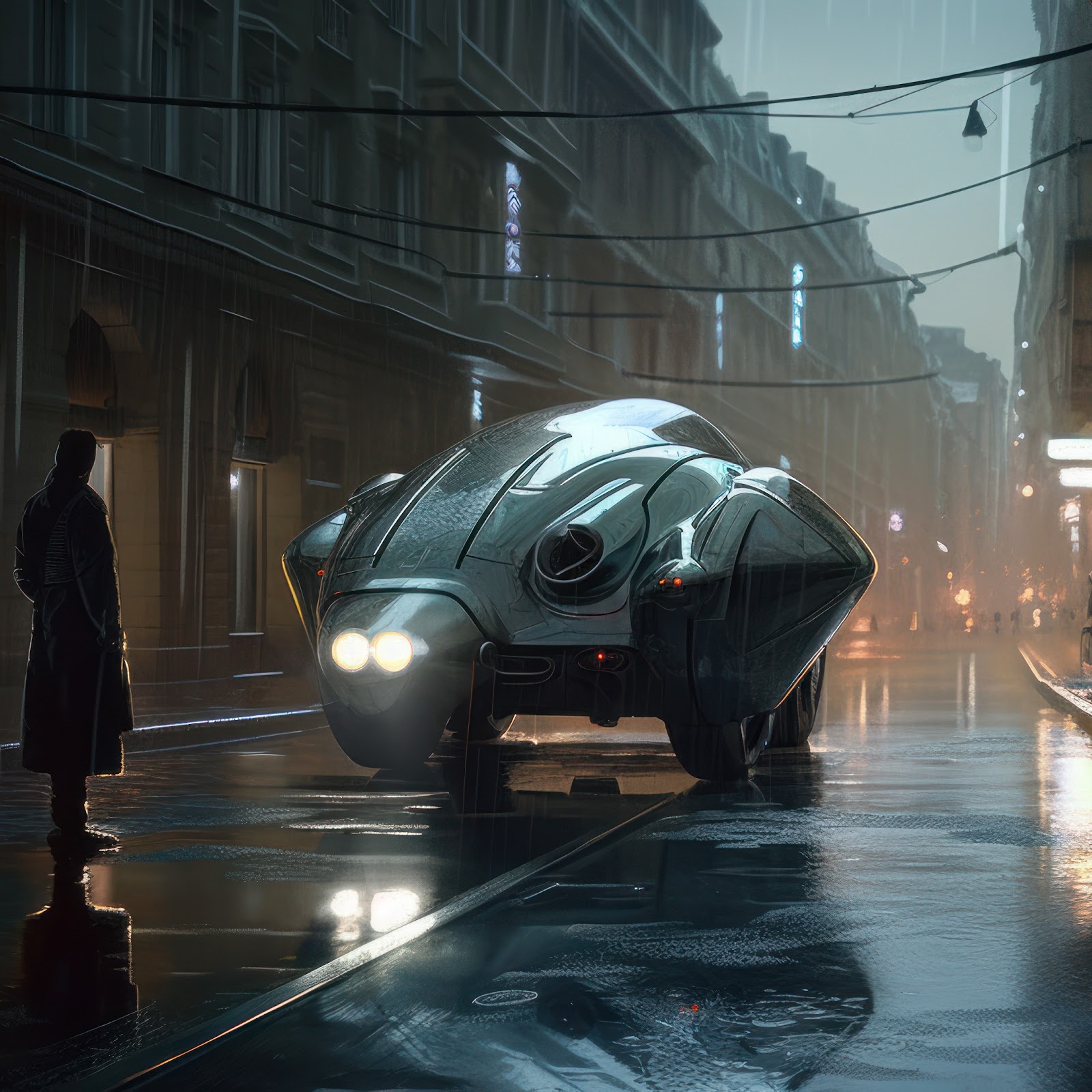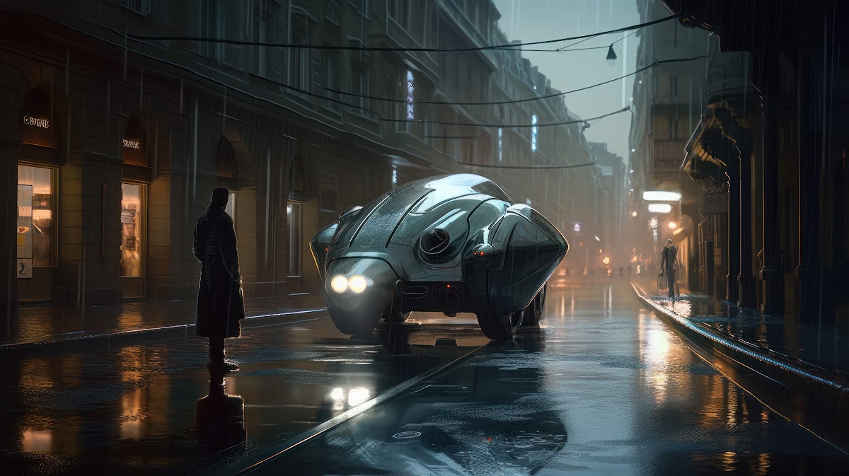 Ai Art, Science Fiction, Vehicle, Street, City 4K Desktop and Mobile Wallpaper Background with a maximum resolution of 3854x2160 px.