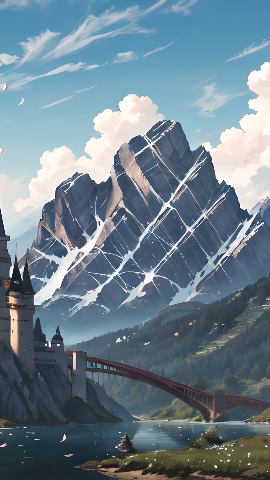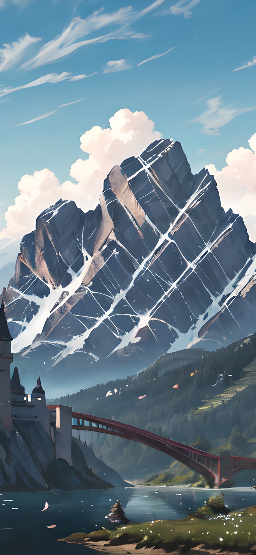 Ai Art, Snowy Peak, Water, Arch Bridge, Snow Covered 4K Desktop and Mobile Wallpaper Background with a maximum resolution of 3840x2160 px.
