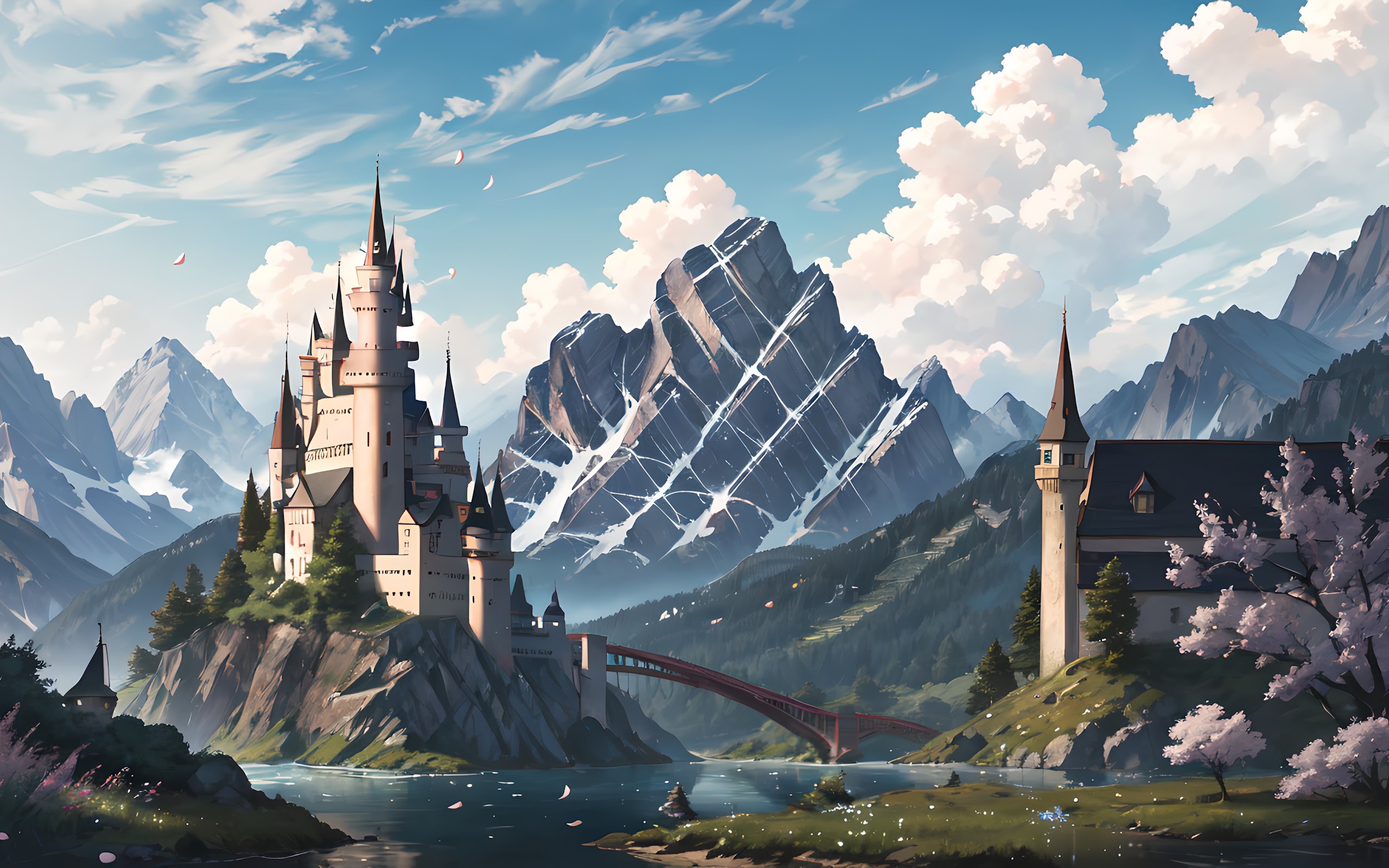 Ai Art, Snowy Peak, Water, Arch Bridge, Snow Covered 4K Desktop Wallpaper