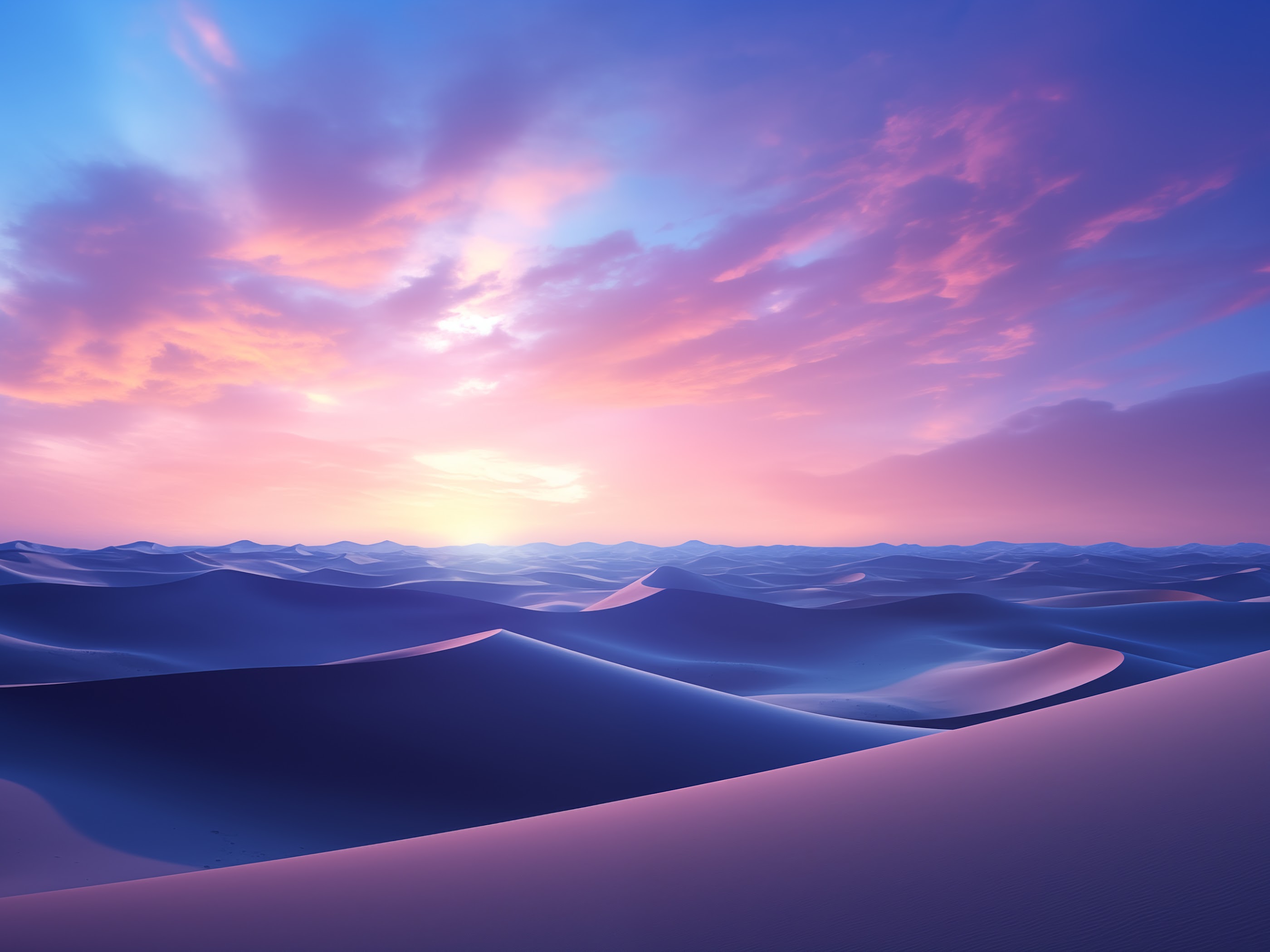 Desert, Blue Hour, Sand, Dunes, Clouds 4K Desktop and Mobile Wallpaper Background with a maximum resolution of 3840x2160 px.
