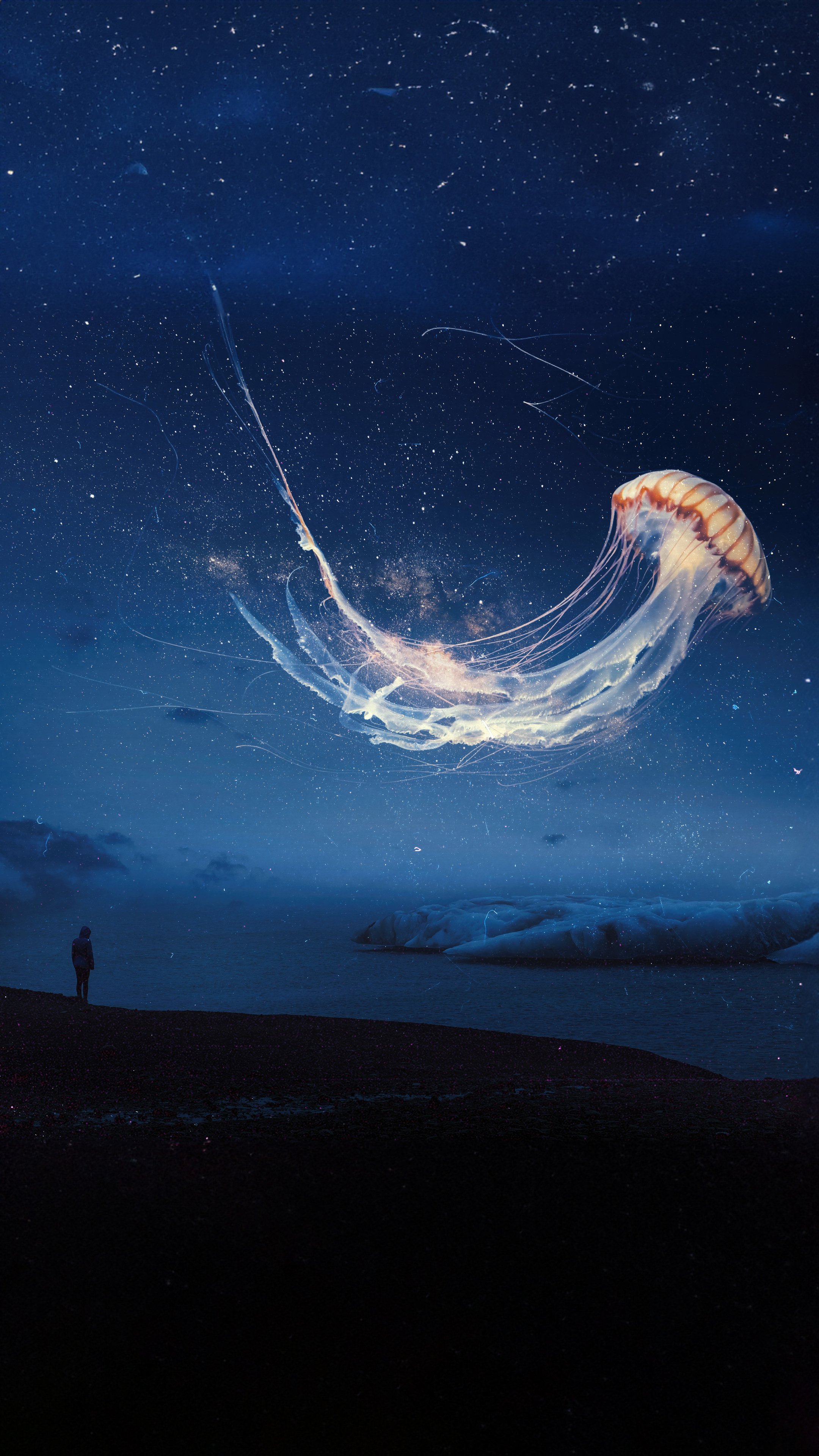 Jellyfish, Surreal, Galaxy, Seascape 4K  iPhone Wallpaper for Free Download in High Quality [2160x3840]