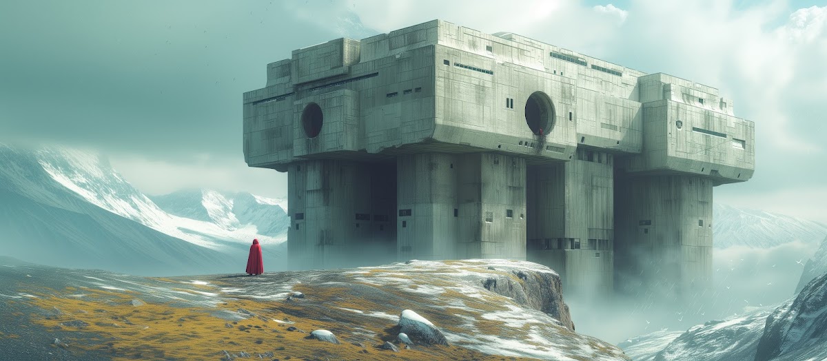 Ai Art, Illustration, Brutalism, Arctic, Mountains 5K Desktop and Mobile Wallpaper Background with a maximum resolution of 6592x2880 px.