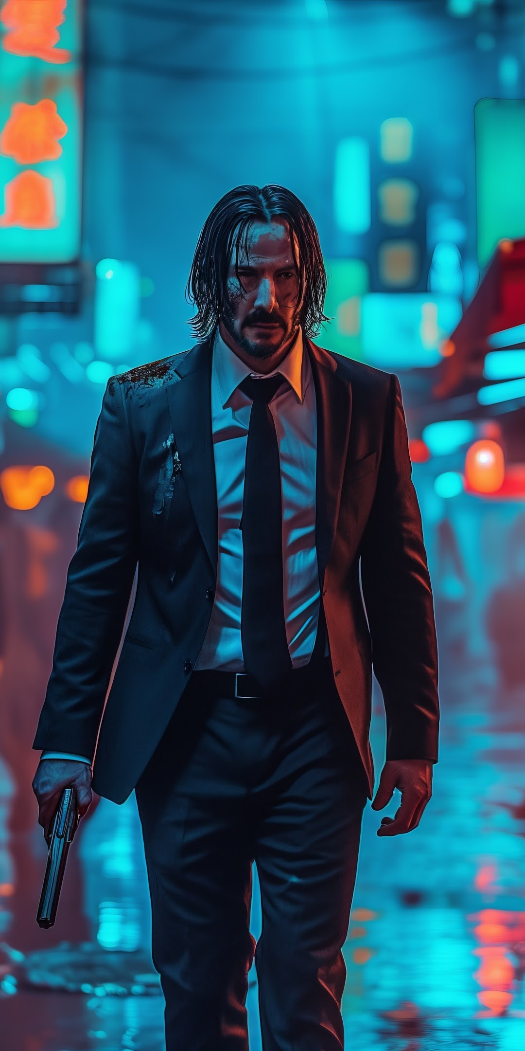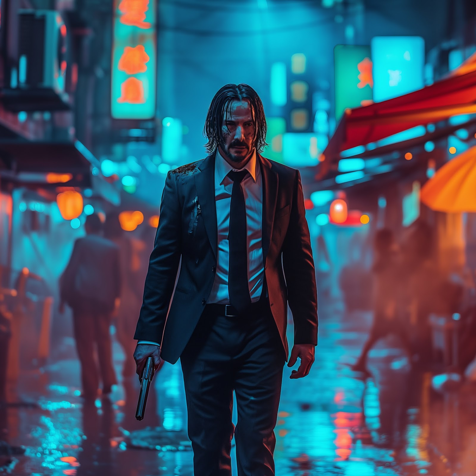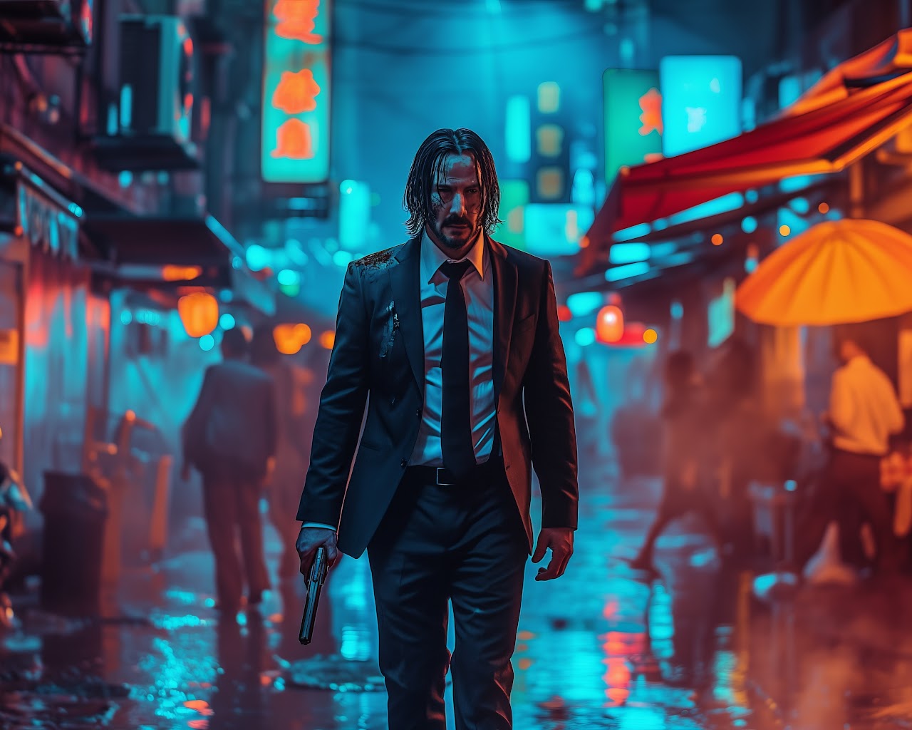 Ai Art, Illustration, City, Neon, John Wick 5K Desktop Wallpaper