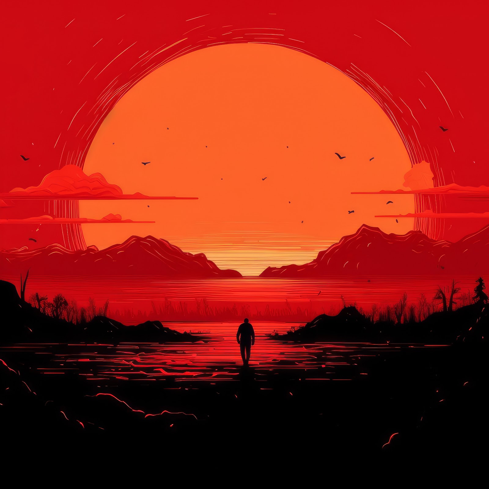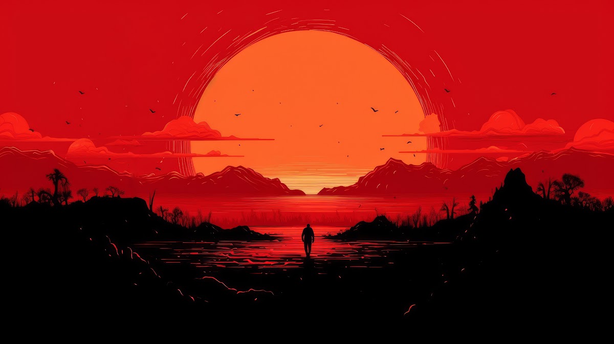 Ai Art, Illustration, Sun, Clouds, Mountains 2K Desktop and Mobile Wallpaper Background with a maximum resolution of 2912x1632 px.