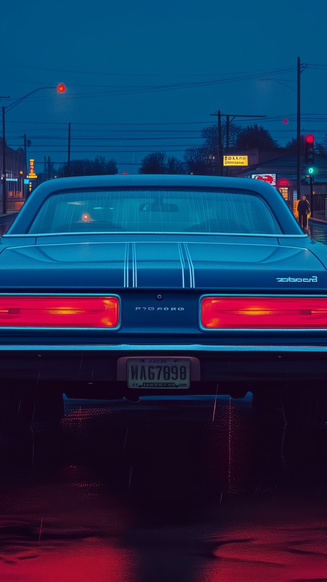 Illustration, Ai Art, Car, Taillights, Blue Hour 5K Phone Wallpaper
