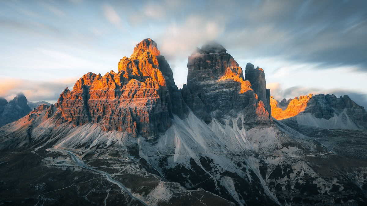 Italy, Three Peaks Of Lavaredo, Clouds, Sky, Mountains 4K Desktop Wallpaper