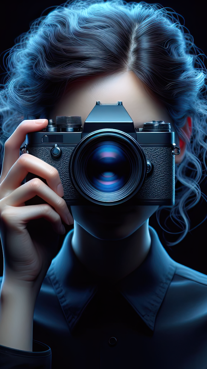 Ai Art, Camera, Hair , Black, Black Background 4K Desktop and Mobile Wallpaper Background with a maximum resolution of 3840x2160 px.