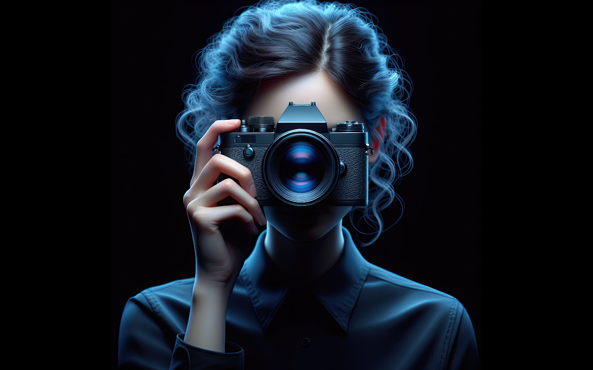 Ai Art, Camera, Hair , Black, Black Background 4K Desktop and Mobile Wallpaper Background with a maximum resolution of 3840x2160 px.