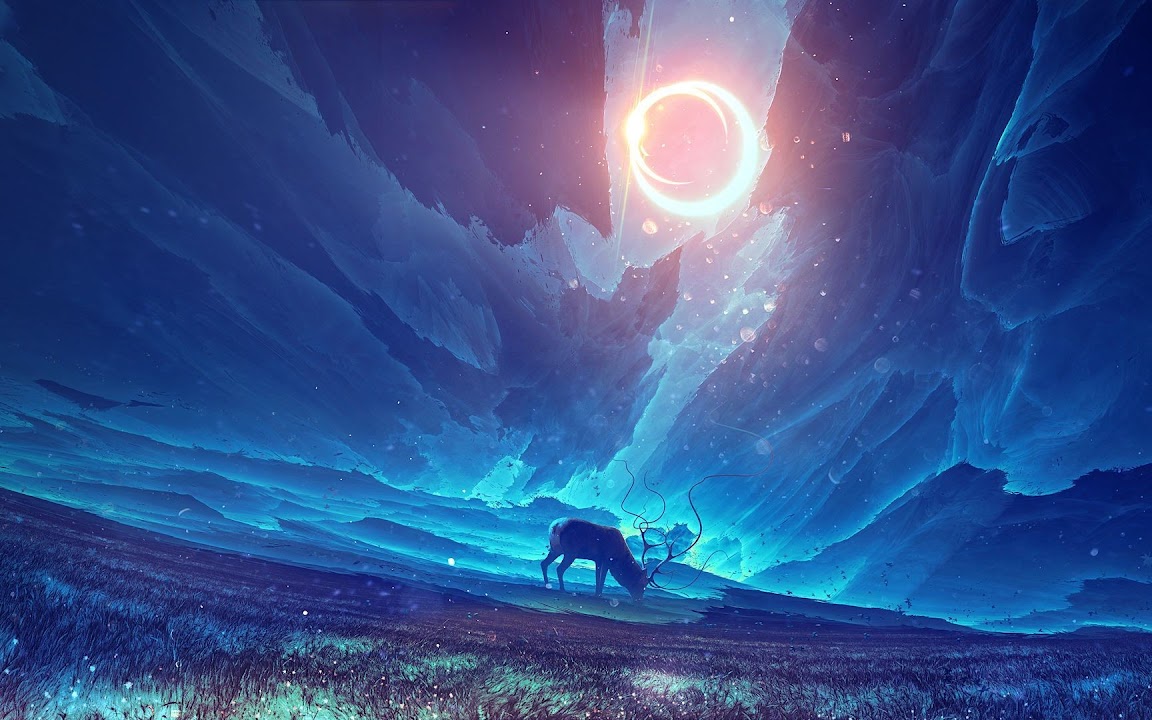 Artwork, Fantasy Art, Sunlight, Field, Solar Eclipse Full HD Desktop Wallpaper