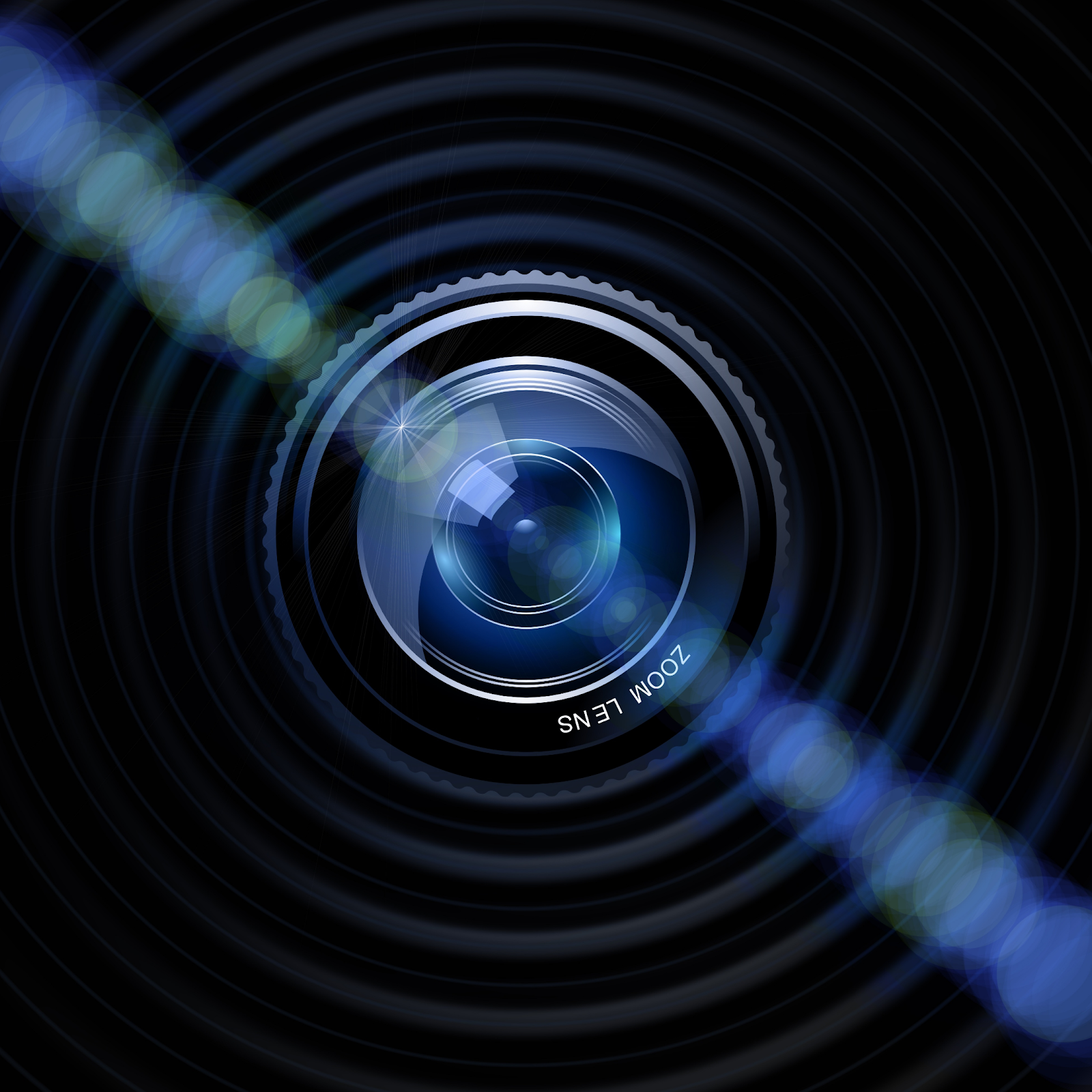 Camera, Lens, Blue, Black, Dark 4K Desktop and Mobile Wallpaper Background with a maximum resolution of 3840x2160 px.