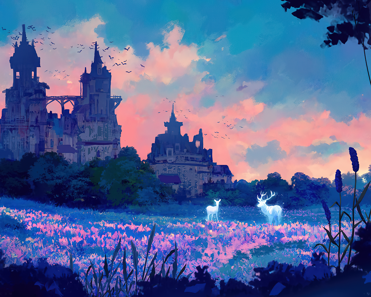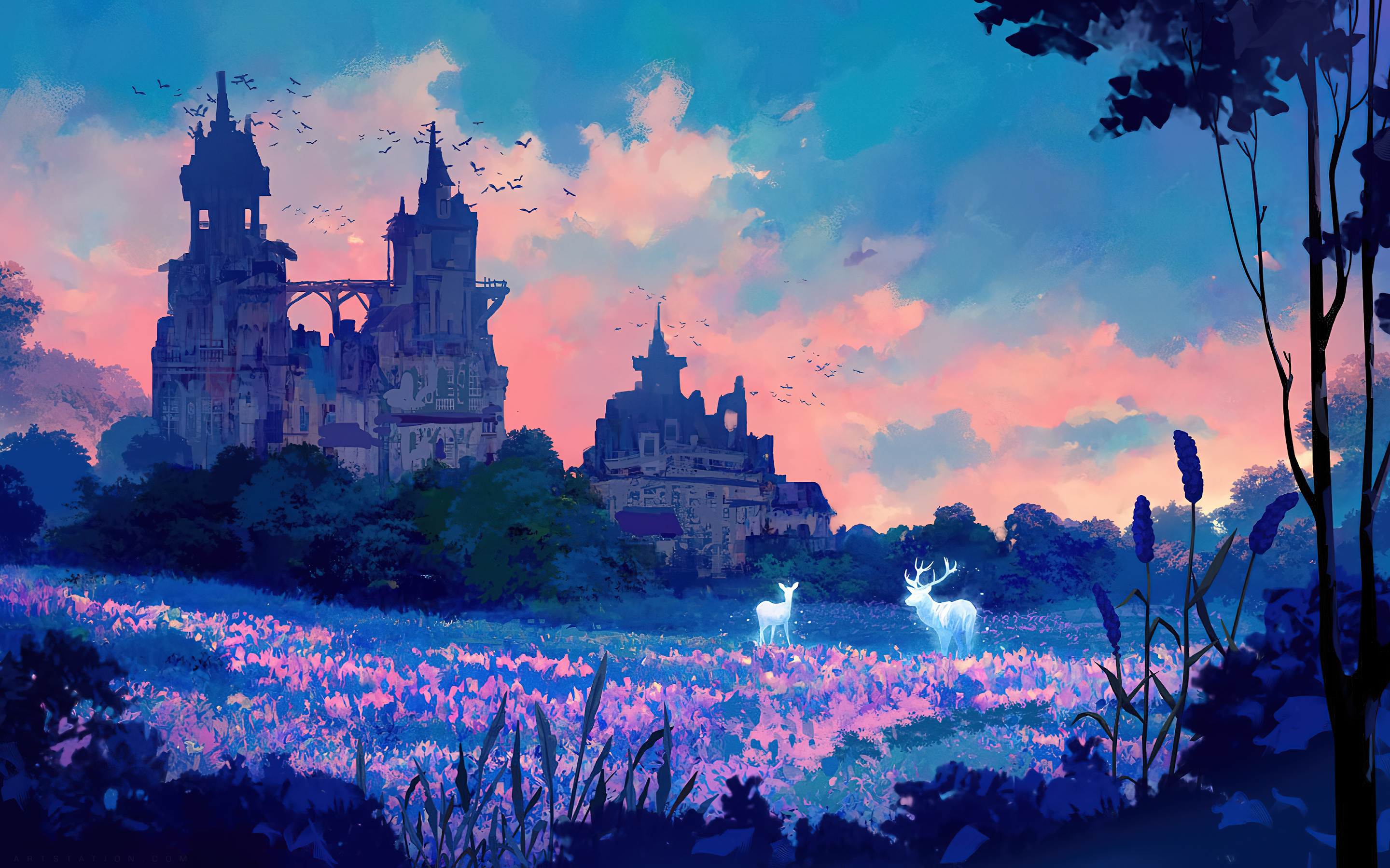 Digital Art, Artstation, Deer, Pastel, Sky 4K Desktop and Mobile Wallpaper Background with a maximum resolution of 3840x2160 px.
