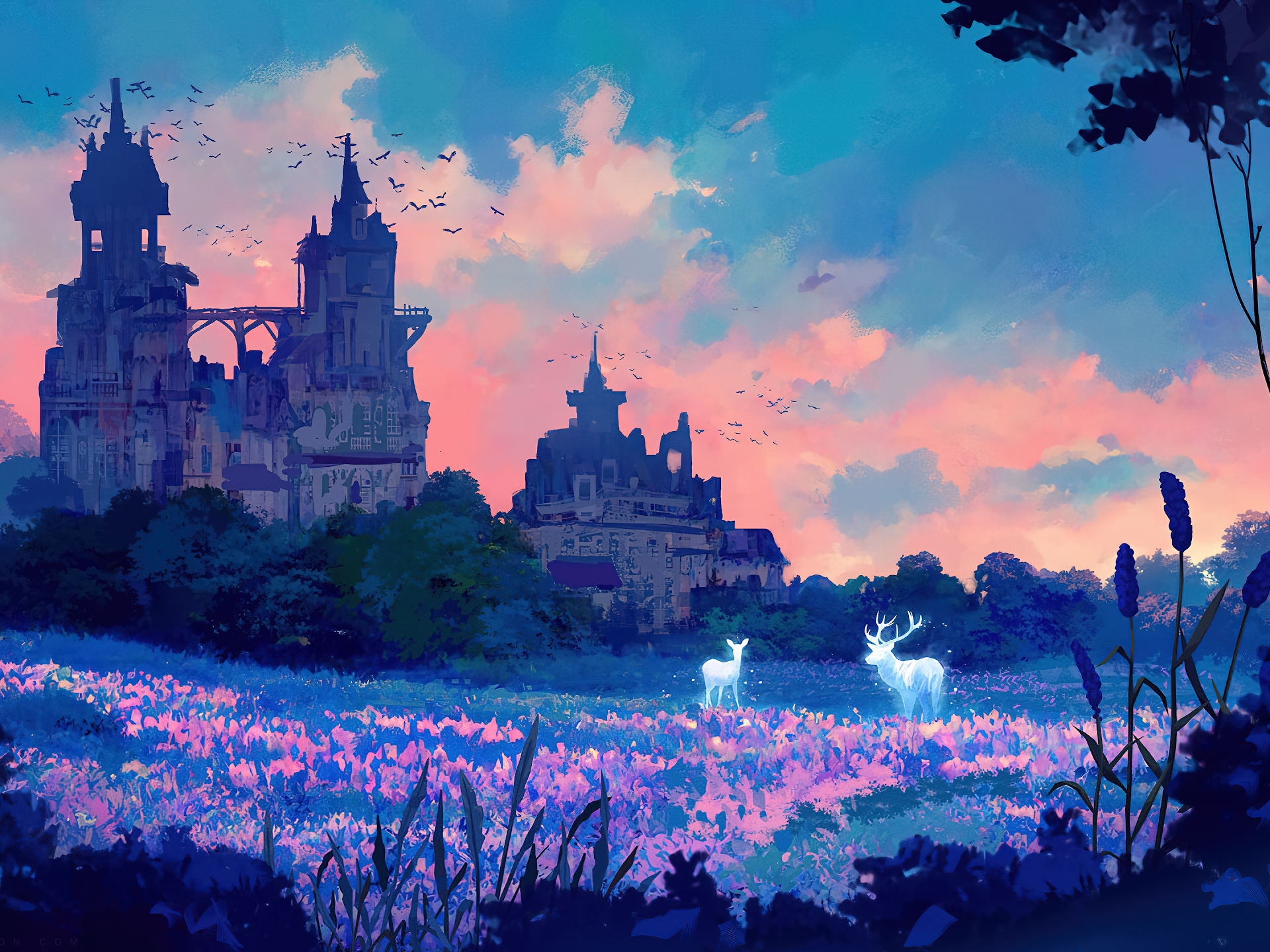 Digital Art, Artstation, Deer, Pastel, Sky 4K Desktop Wallpaper