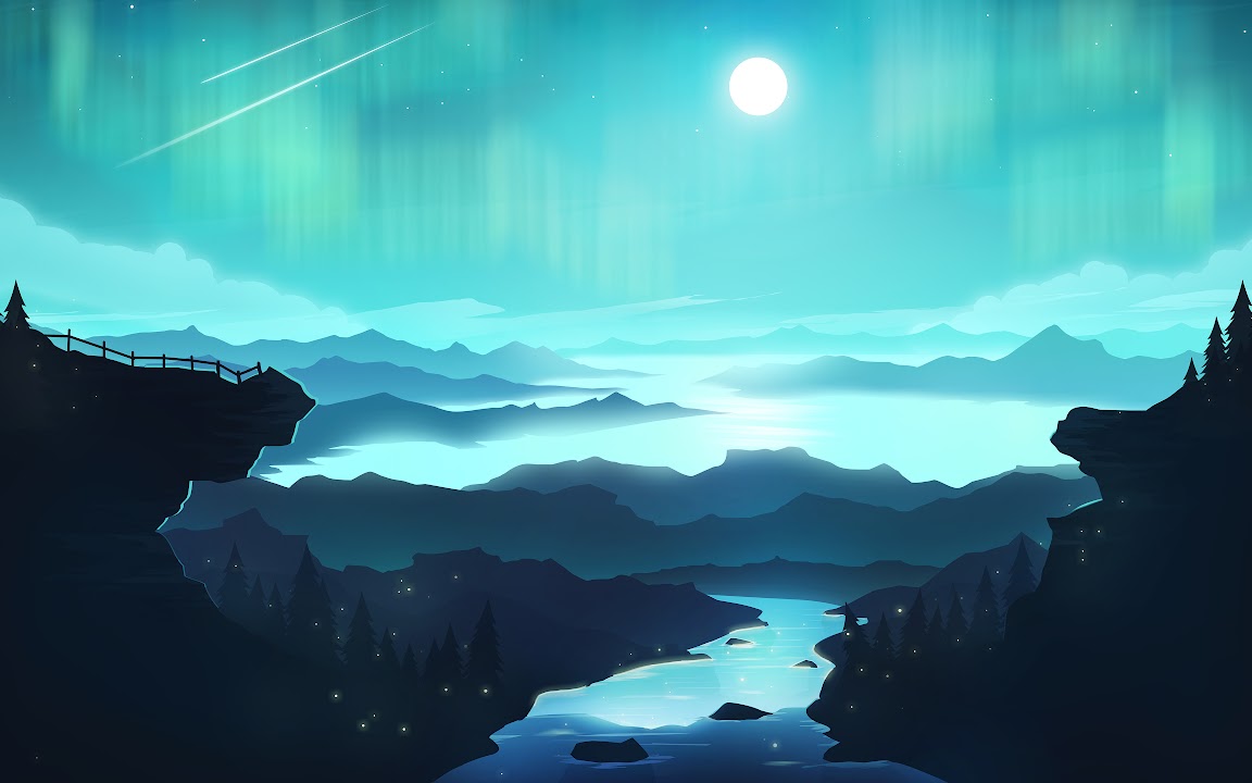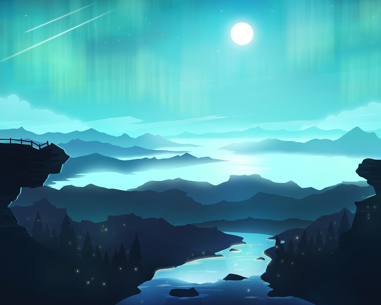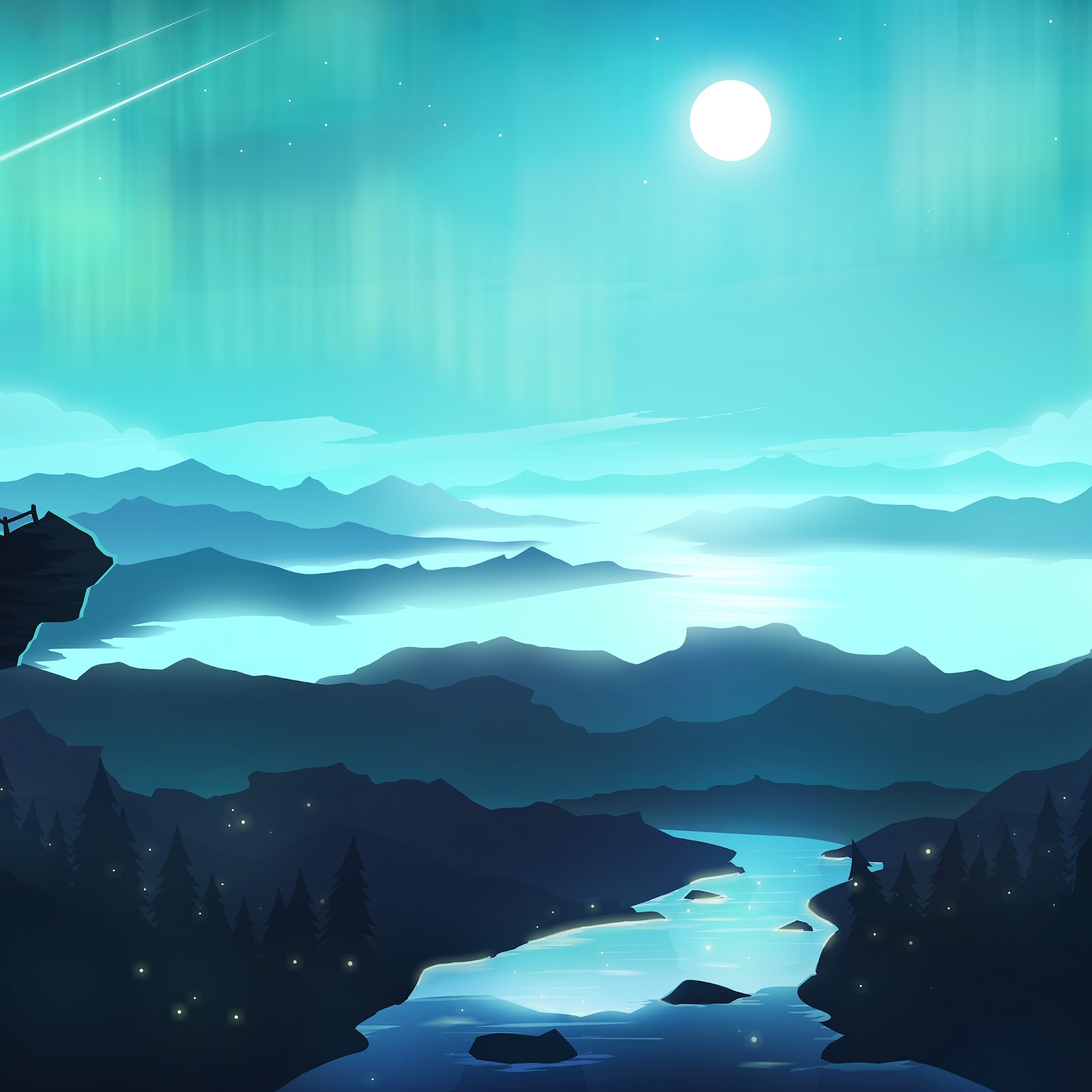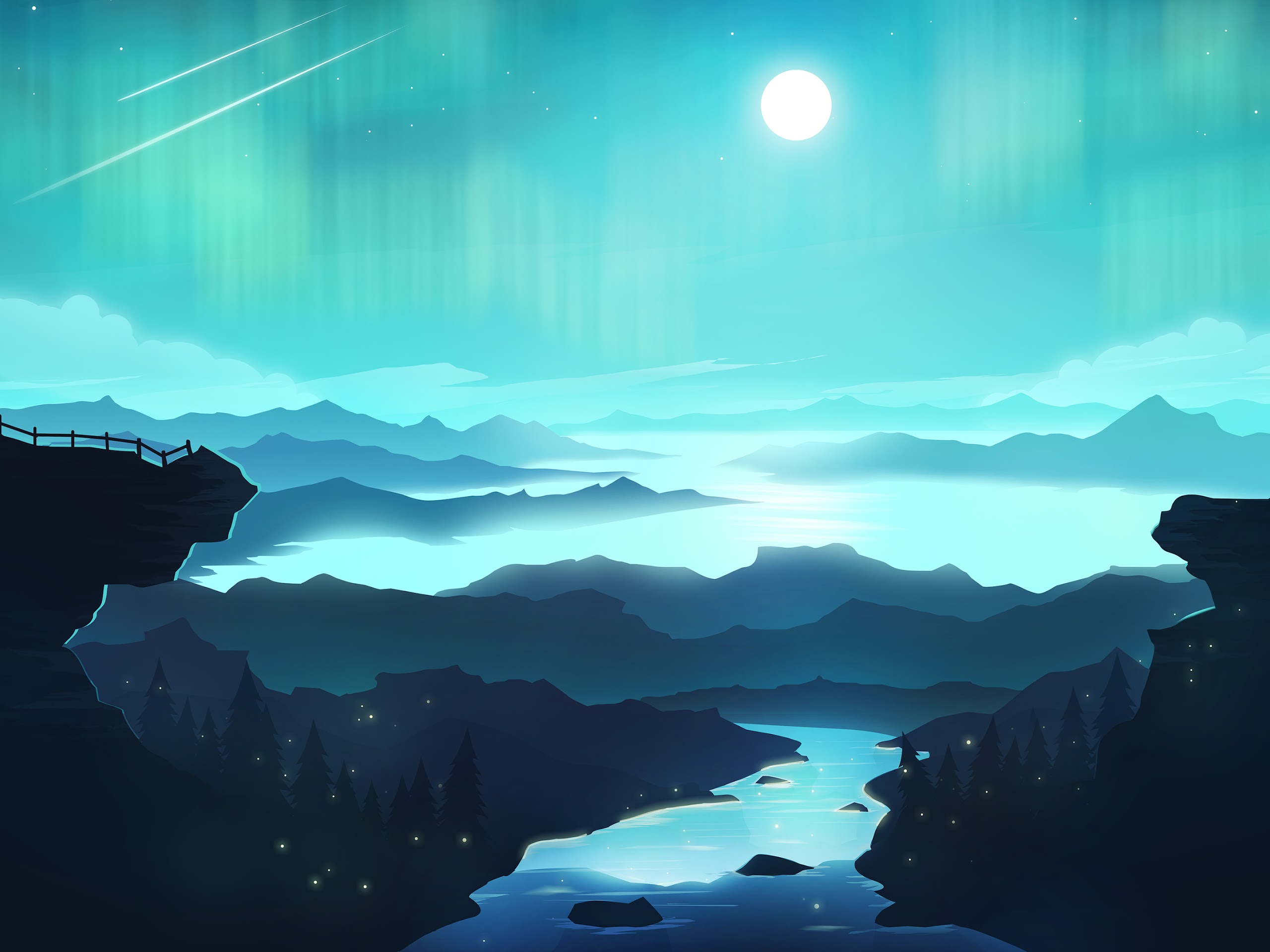 Digital Art, Vector, Landscape, Blue, Cyan 4K Desktop and Mobile Wallpaper Background with a maximum resolution of 3840x2160 px.