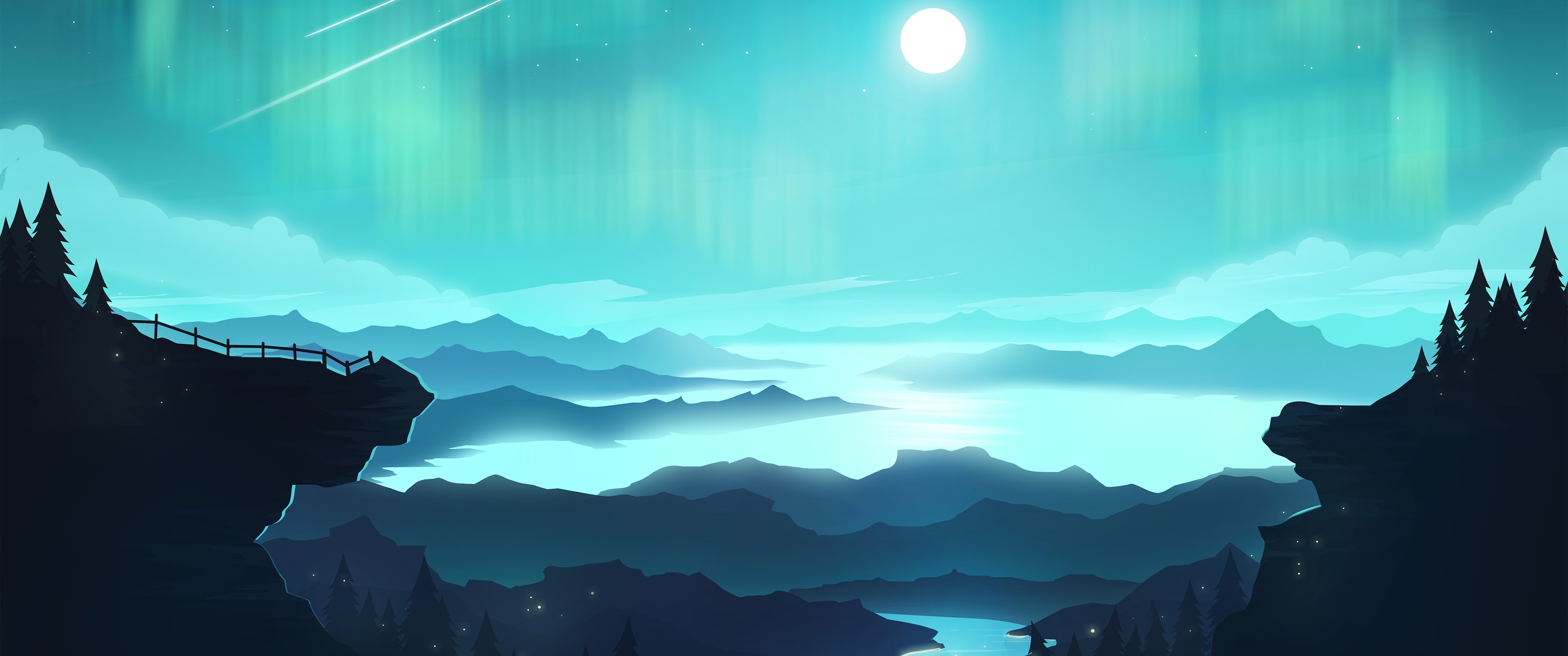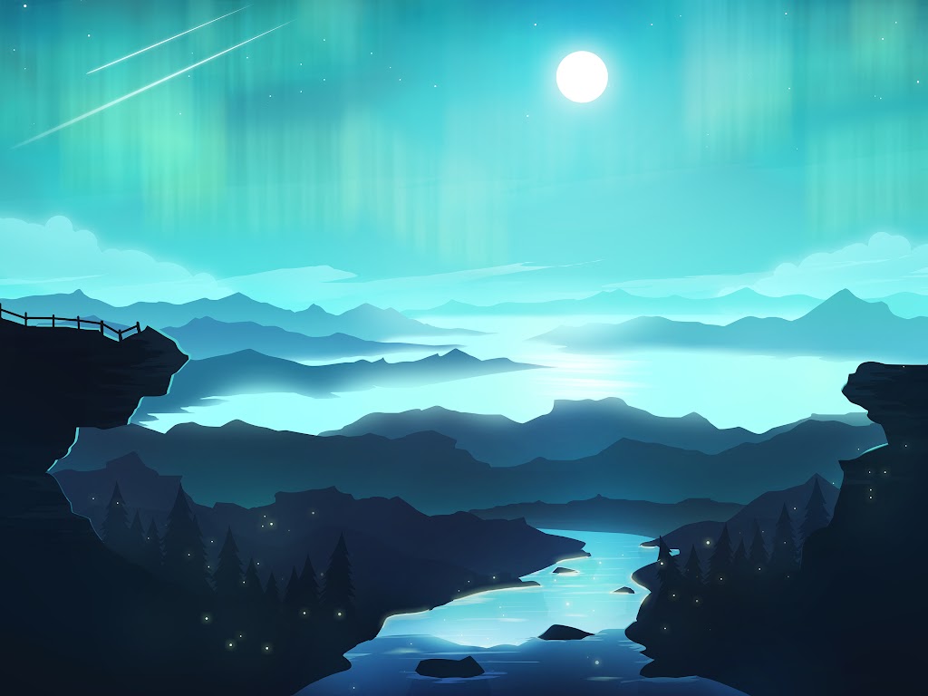 Digital Art, Vector, Landscape, Blue, Cyan 4K Desktop and Mobile Wallpaper Background with a maximum resolution of 3840x2160 px.