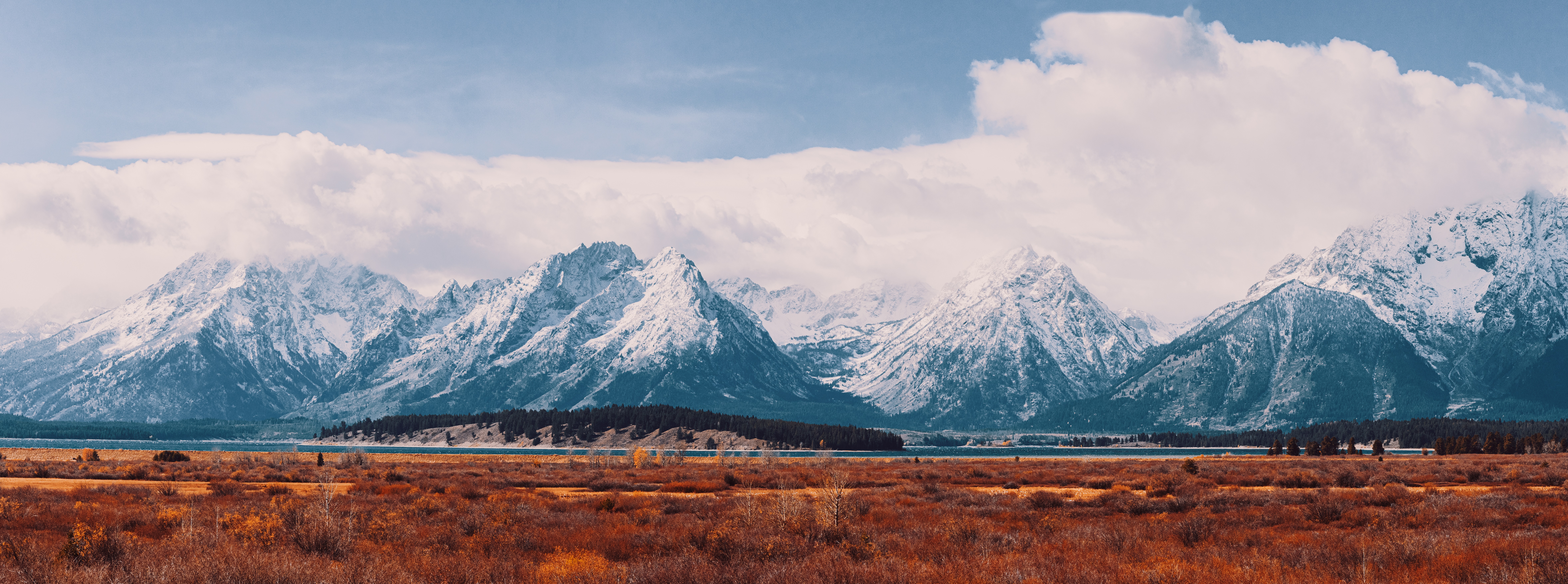 Landscape, Grand Teton National Park, Snow, Mountains, Lake 5K Desktop and Mobile Wallpaper Background with a maximum resolution of 9418x3507 px.