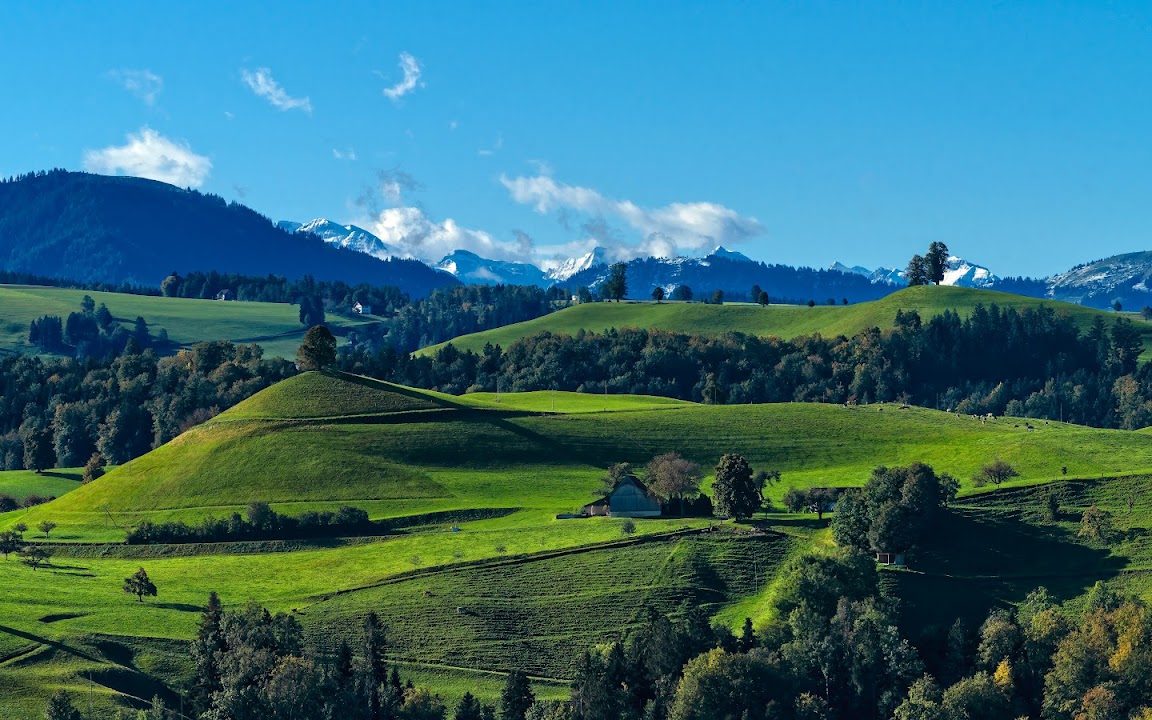 Landscape, Nature, Mountains, Hills, Trees 8K Desktop and Mobile Wallpaper Background with a maximum resolution of 8160x4590 px.