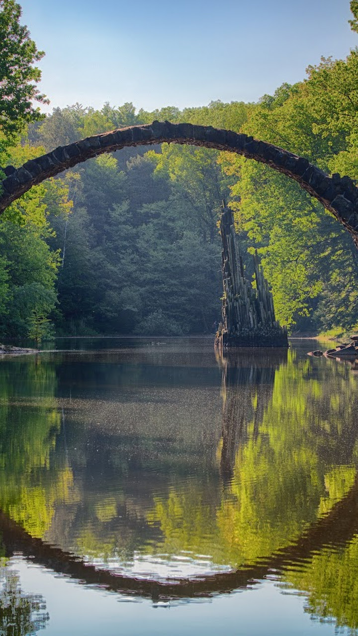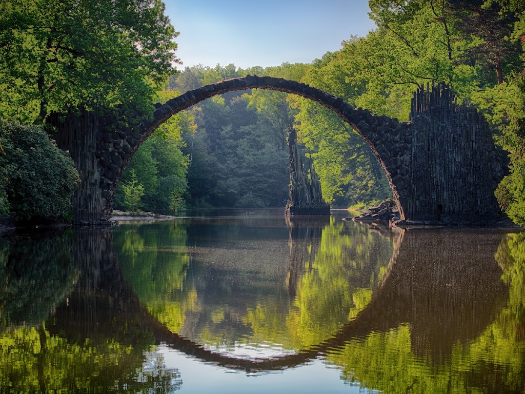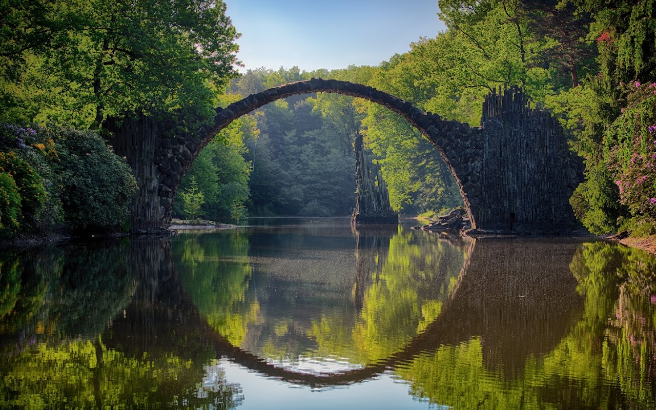 Nature, Landscape, Reflection, Symmetry, Rakotzbrücke Devil'S Bridge 5K Desktop Wallpaper