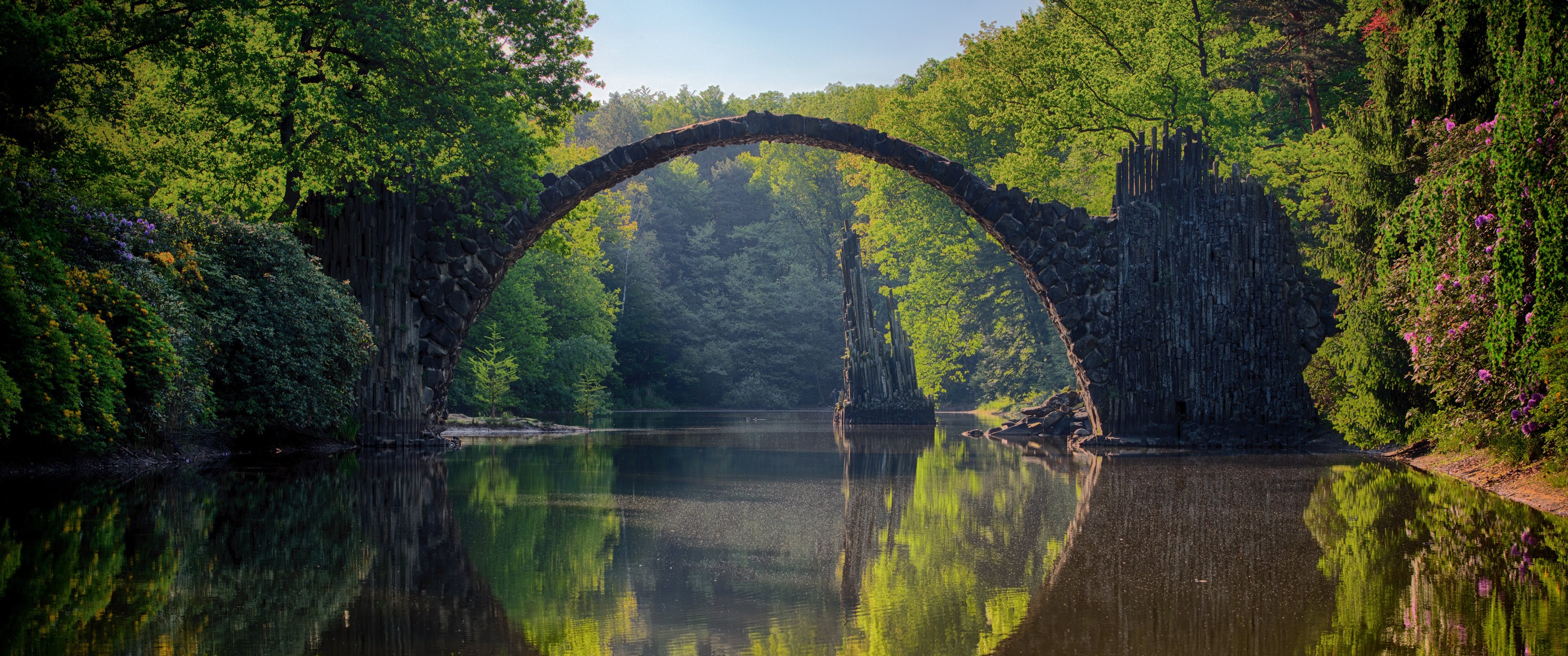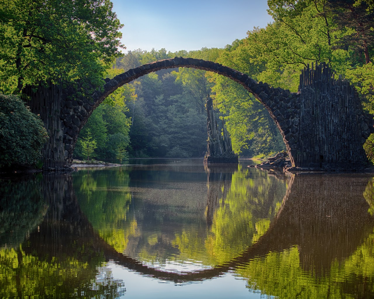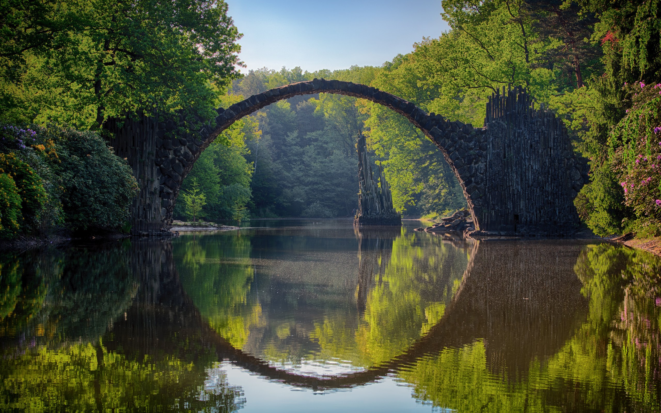 Nature, Landscape, Reflection, Symmetry, Rakotzbrücke Devil'S Bridge 5K Desktop Wallpaper