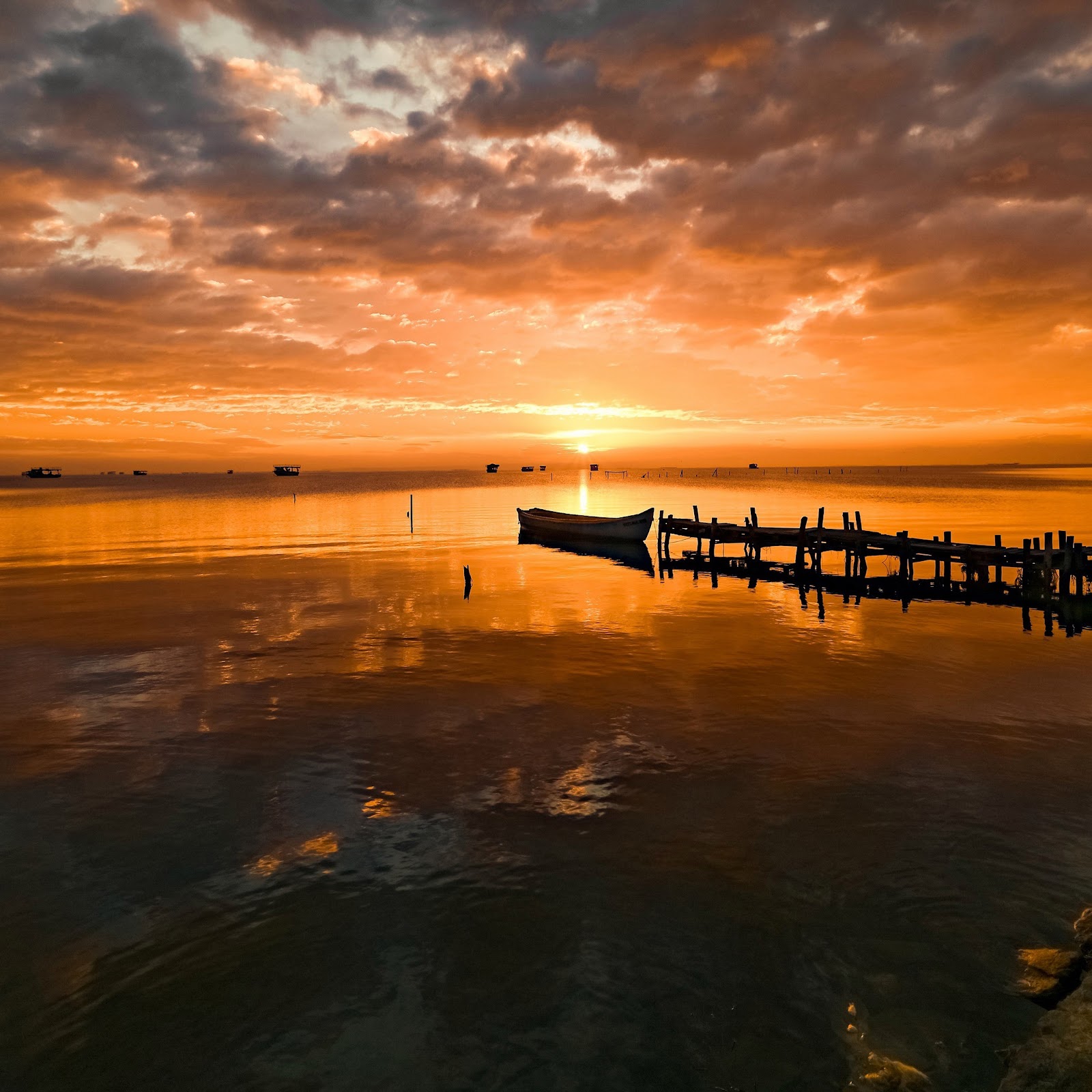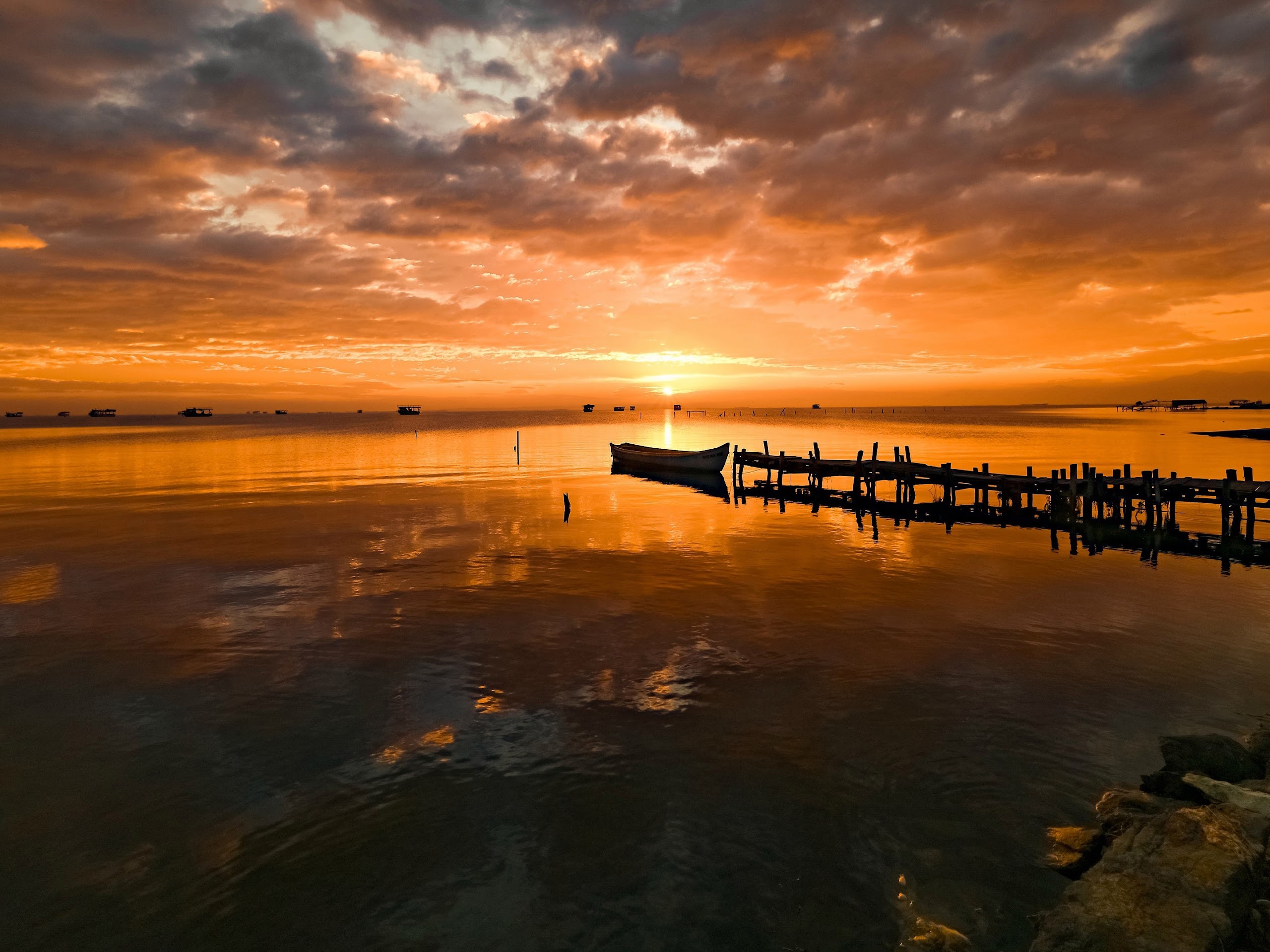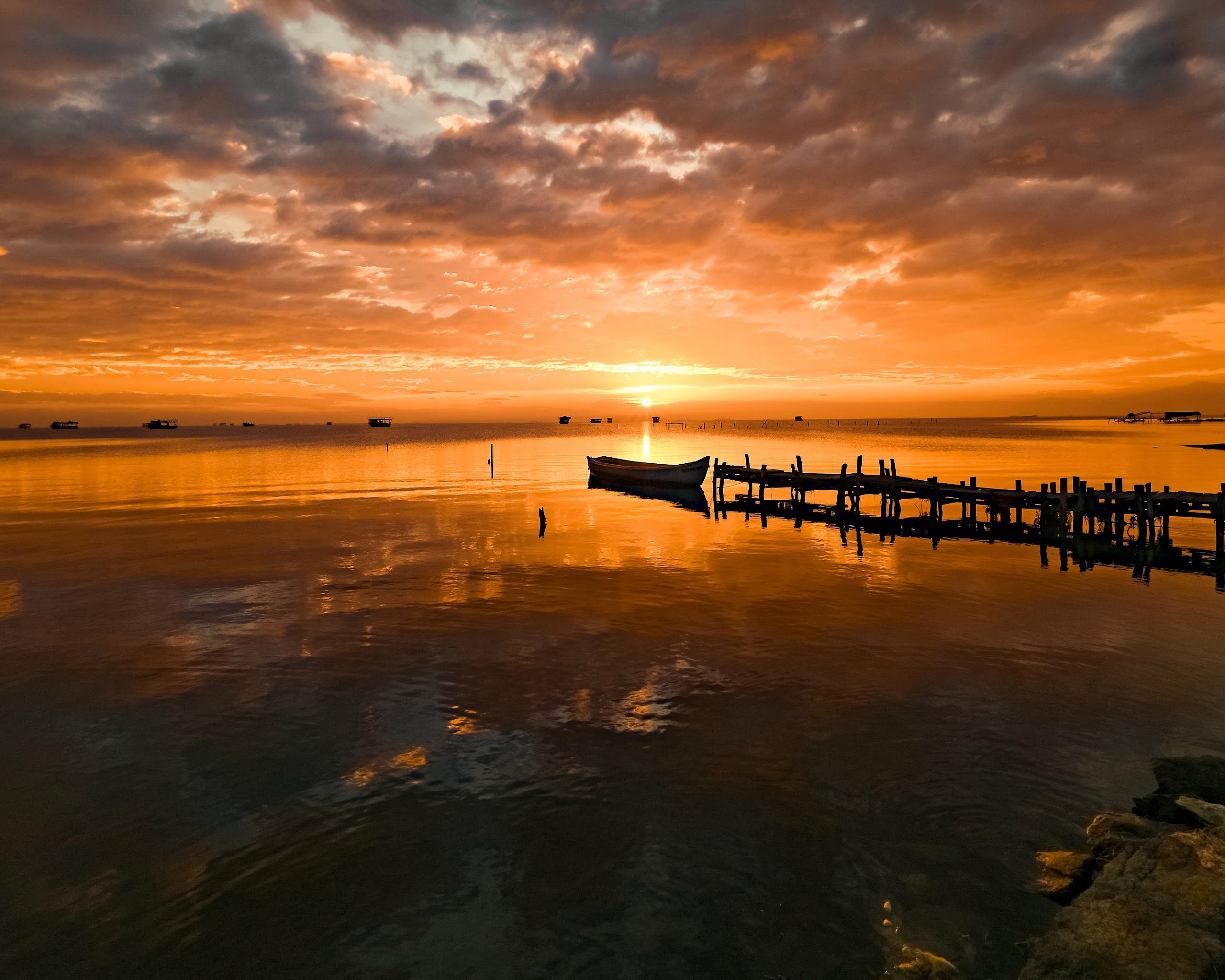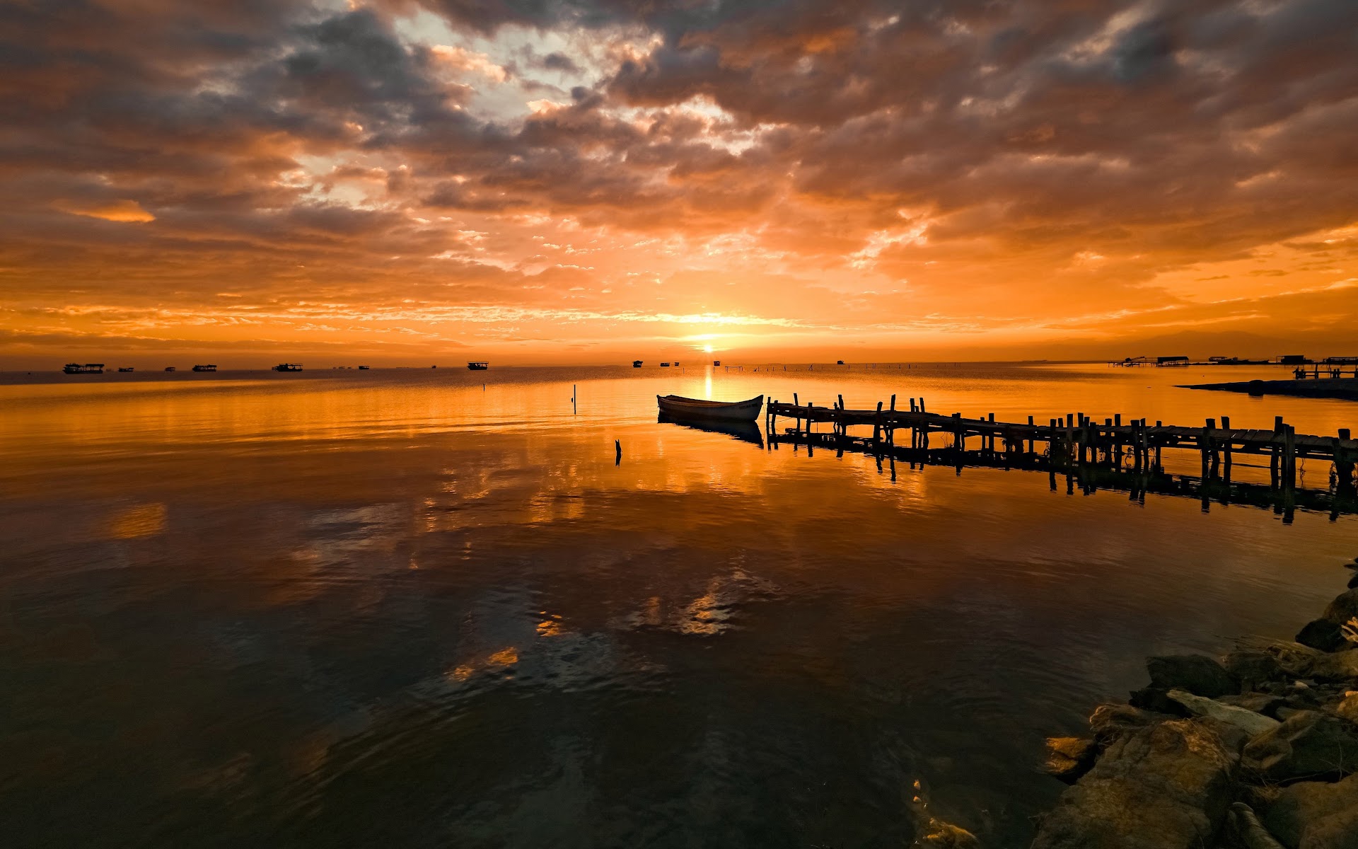 Nature, Landscape, Sunset, Pier, Silhouette 4K Desktop and Mobile Wallpaper Background with a maximum resolution of 3840x2160 px.