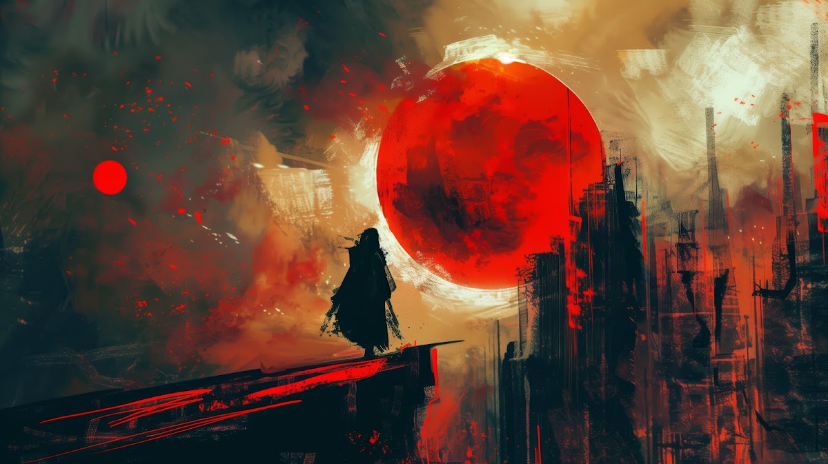 Ai Art, Illustration, Painting, Red, Sun 5K Desktop and Mobile Wallpaper Background with a maximum resolution of 5824x3264 px.