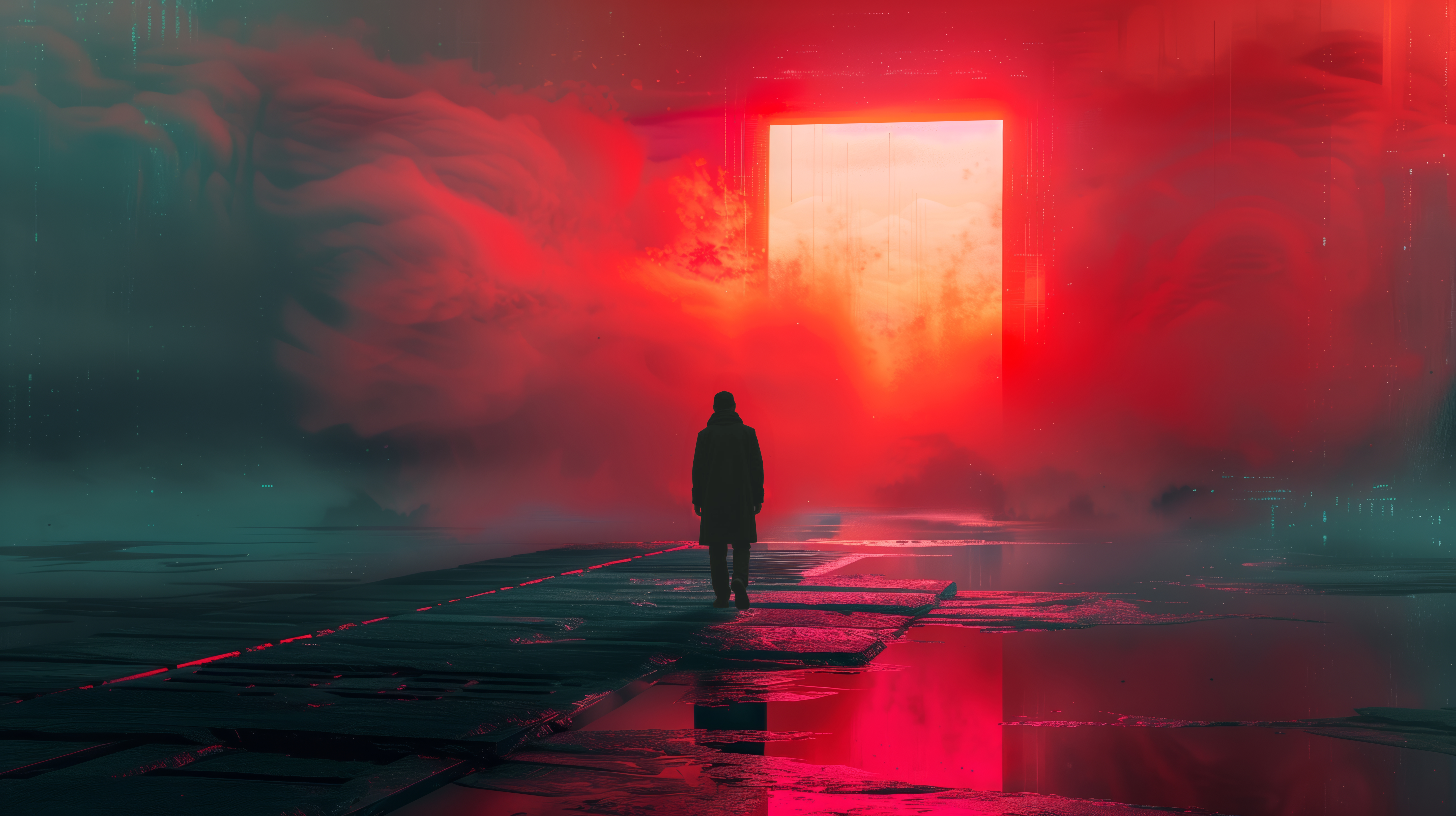 Ai Art, Illustration, Silhouette, Walking, Reflection 5K Desktop Wallpaper