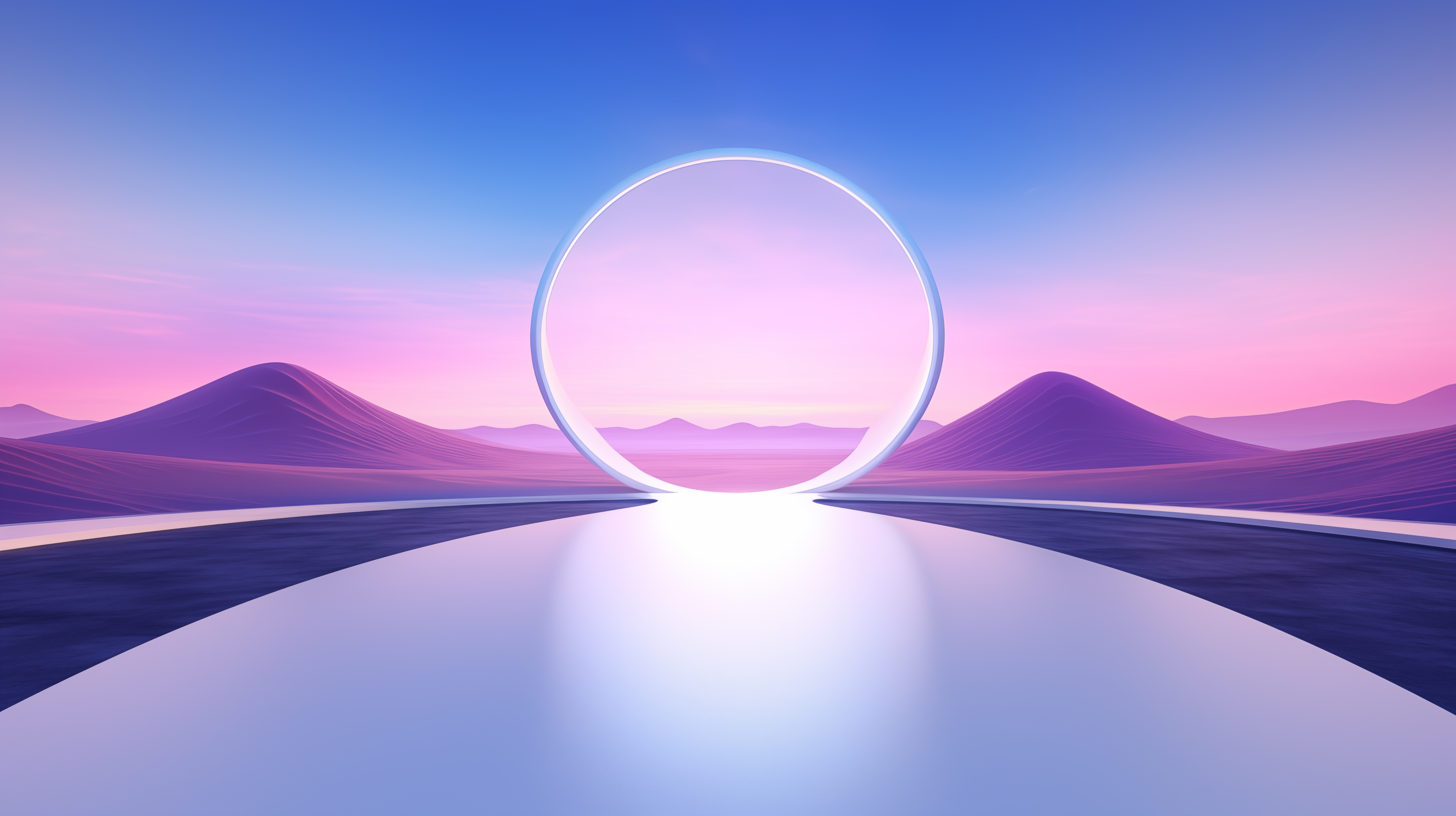 Ai Art, Minimalism, Landscape, Circle, Pastel 5K Desktop and Mobile Wallpaper Background with a maximum resolution of 5824x3264 px.