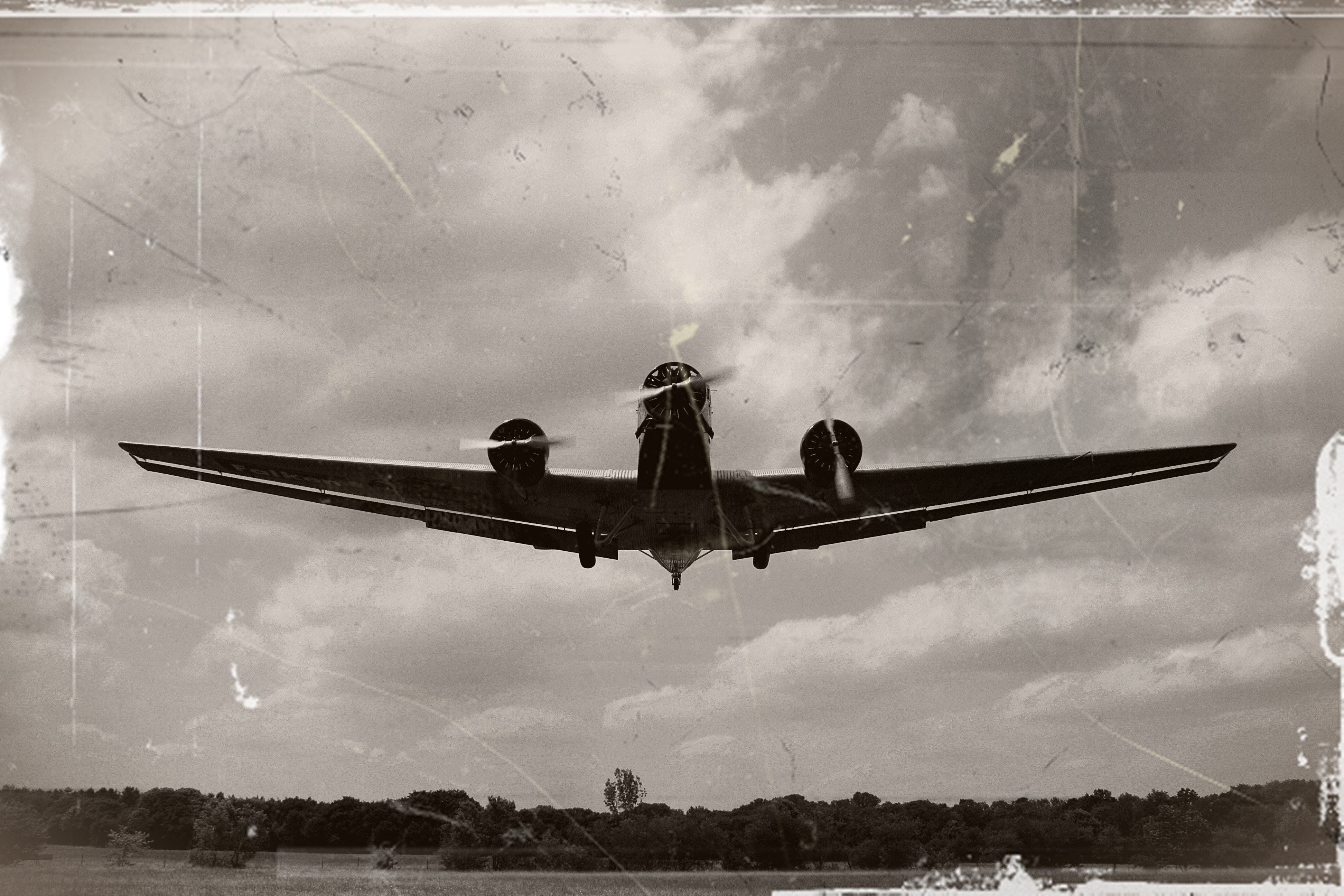 Aircraft, Sepia, Photo Manipulation, Vehicle, Vintage 4K Desktop and Mobile Wallpaper Background with a maximum resolution of 3888x2592 px.