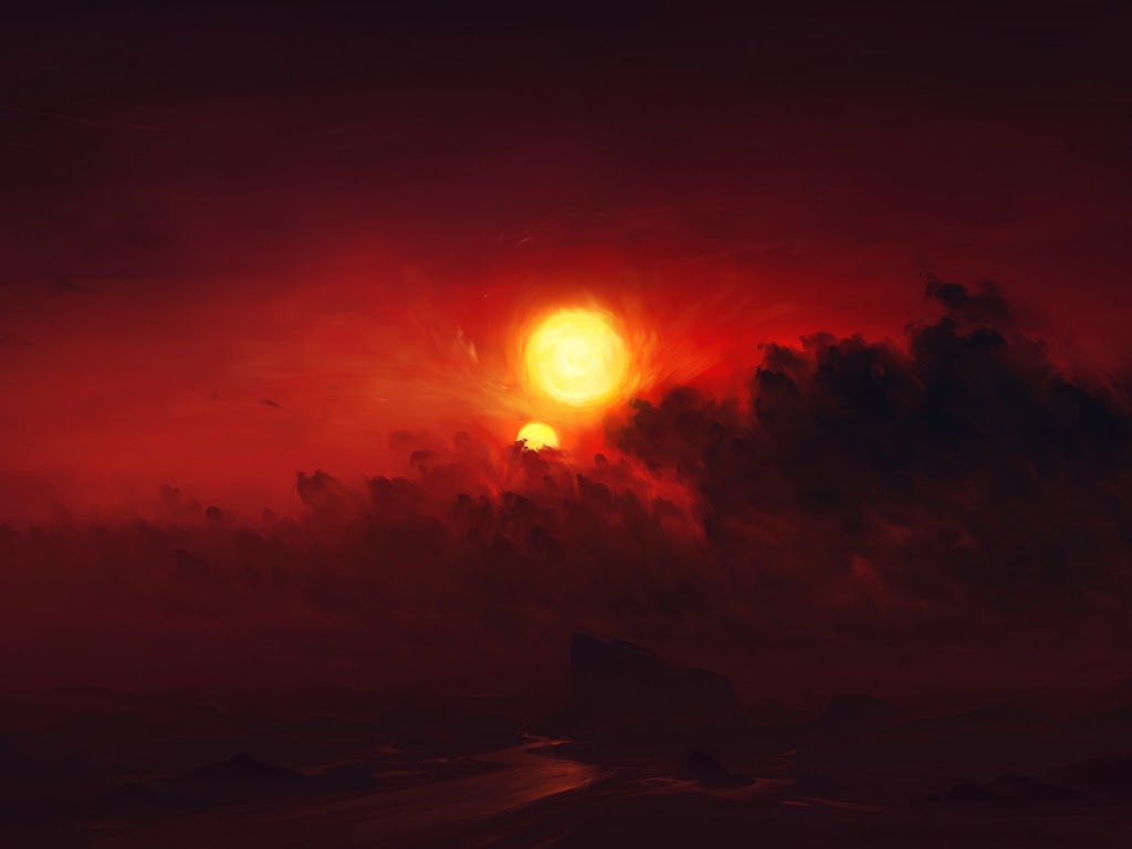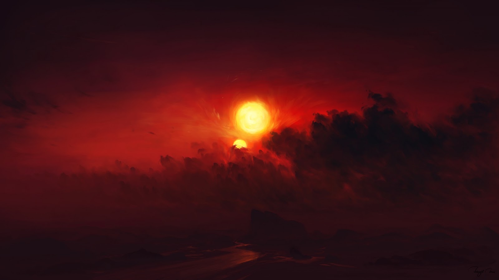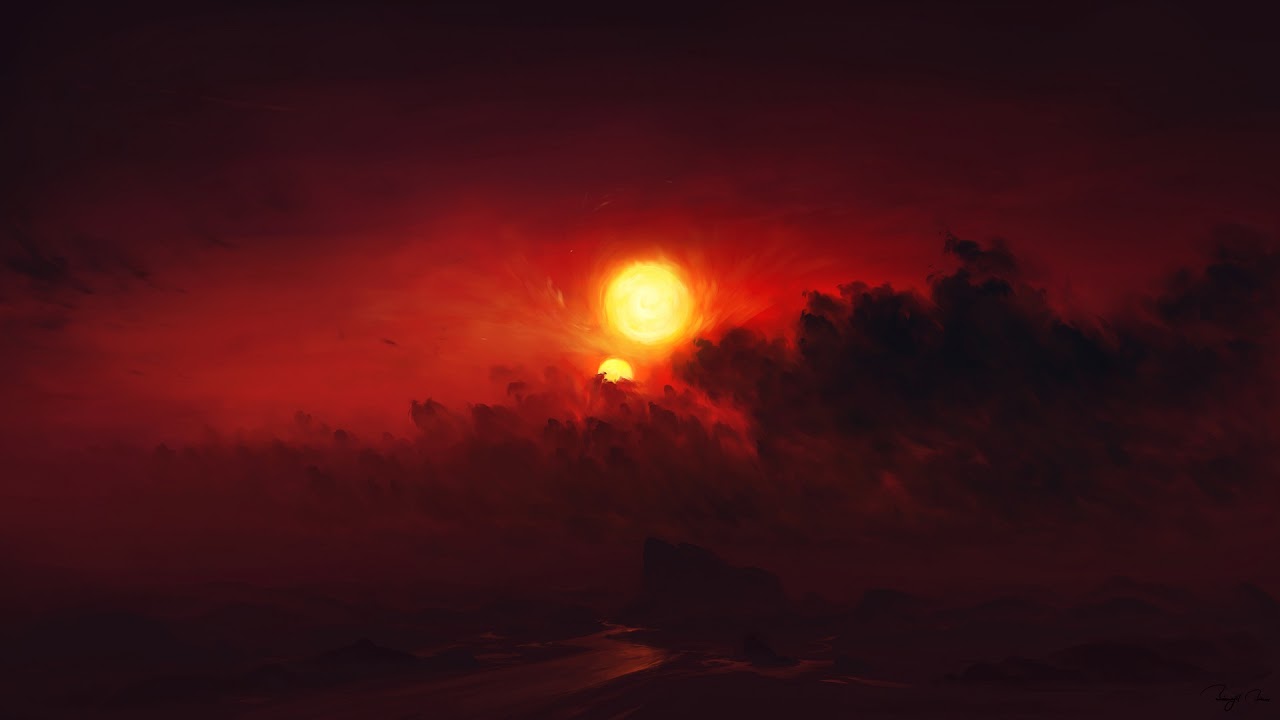 Sun, Clouds, Digital Art, Sunset Full HD Desktop and Mobile Wallpaper Background with a maximum resolution of 1920x1080 px.
