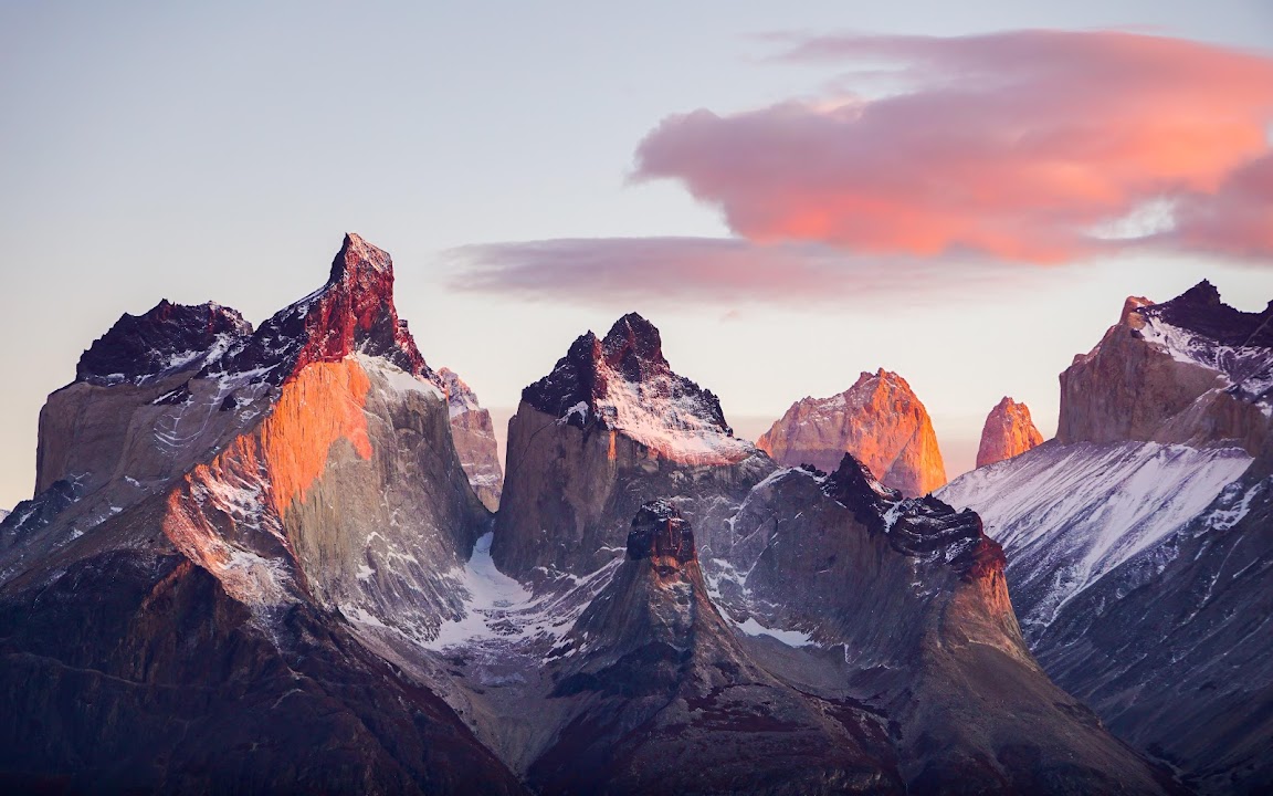 Cliff, Mountain Chain, Mountain Pass, Clouds, Sunset 5K Desktop Wallpaper