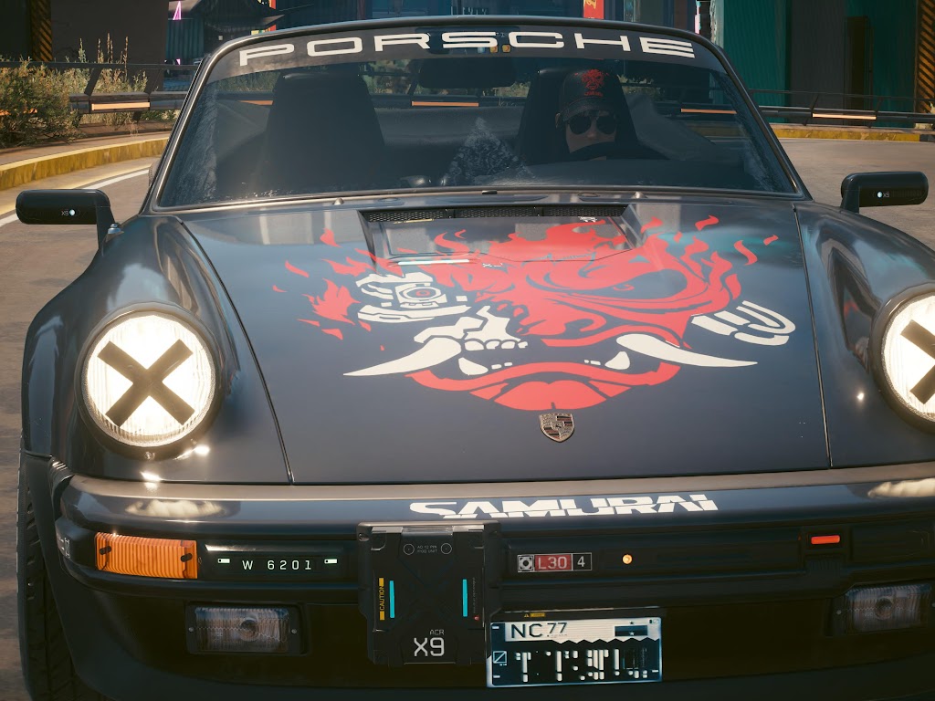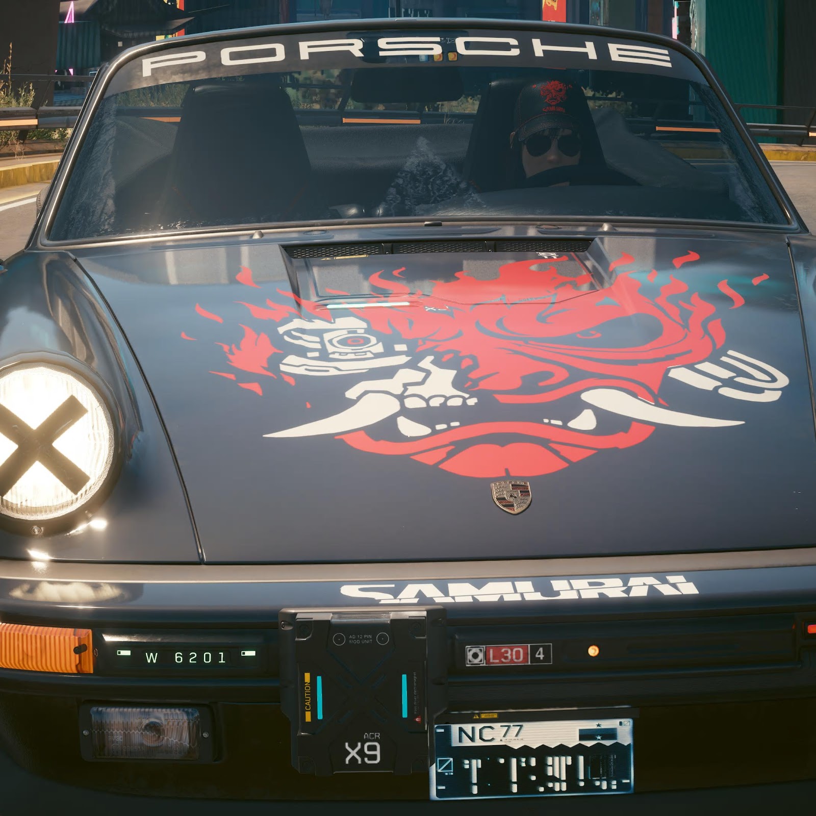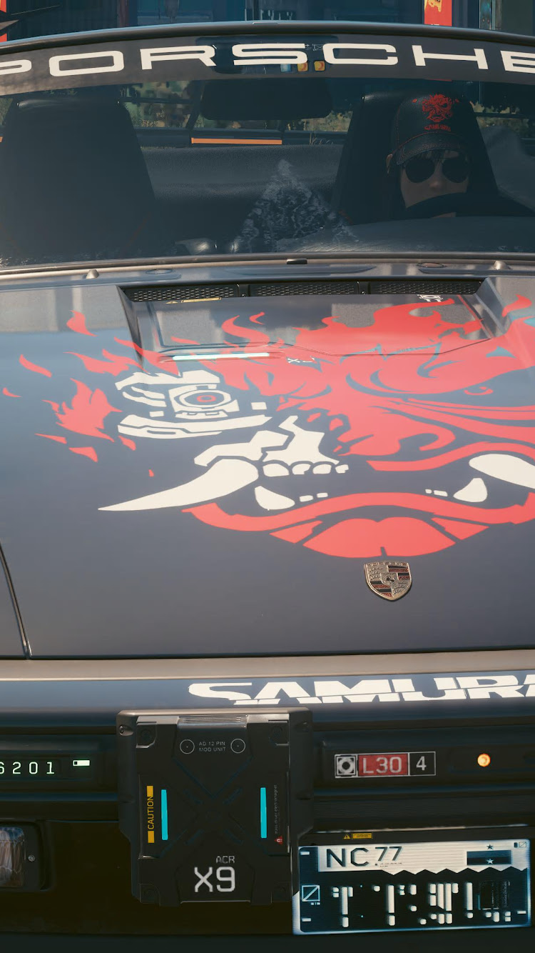 Cyberpunk 2077, Cyberpunk, V (Cyberpunk 2077), Samurai (Cyberpunk 2077), Car 4K Desktop and Mobile Wallpaper Background with a maximum resolution of 3840x2160 px.
