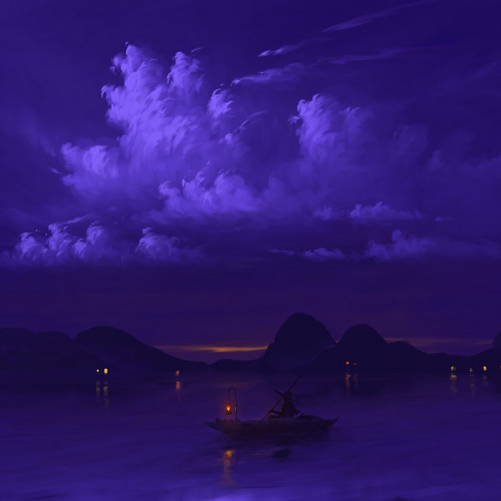 Digital Art, Night, Sky, Water, Boat Full HD Desktop Wallpaper