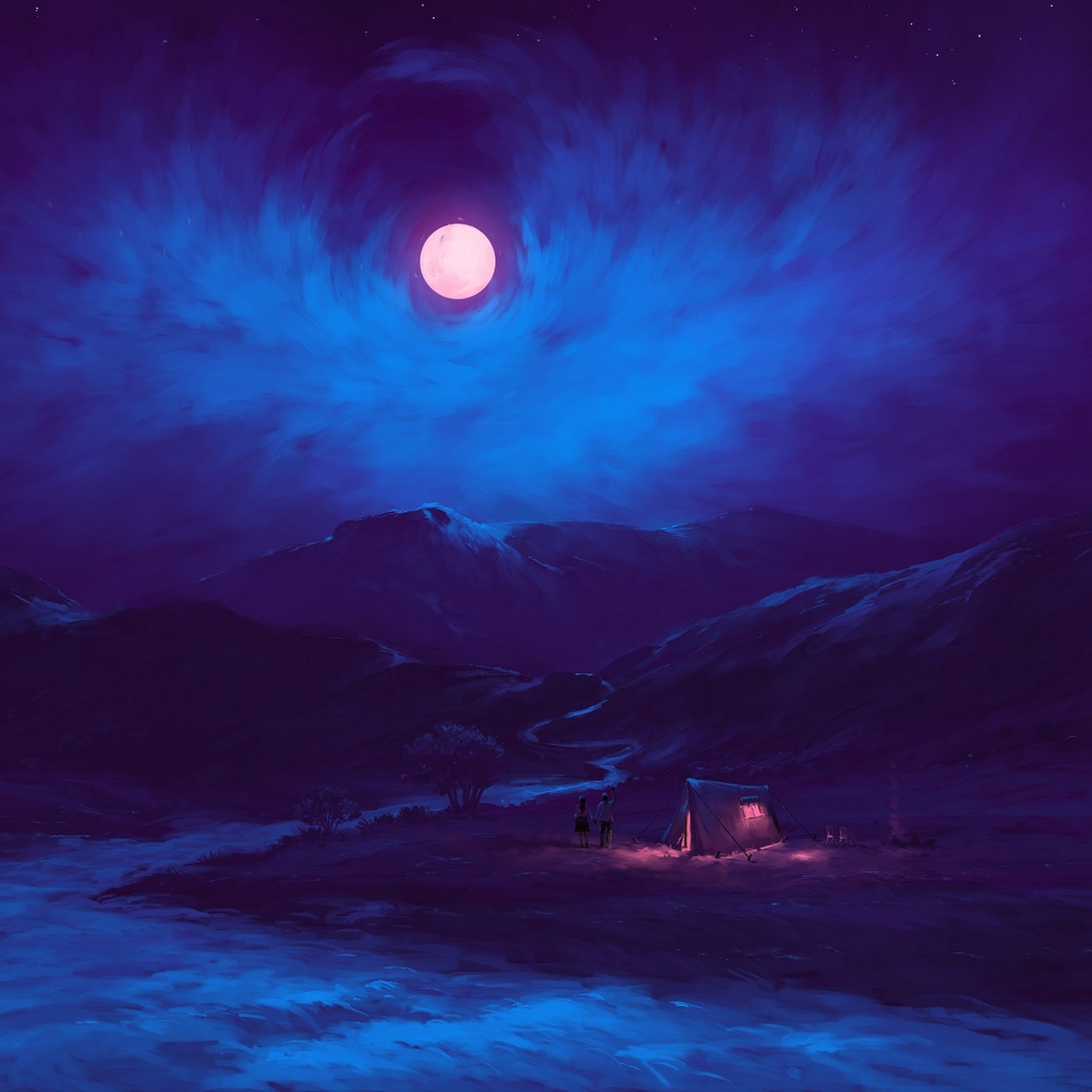 Digital Painting, Landscape, Night, Clouds, Moon Full HD Desktop and Mobile Wallpaper Background with a maximum resolution of 1920x1080 px.