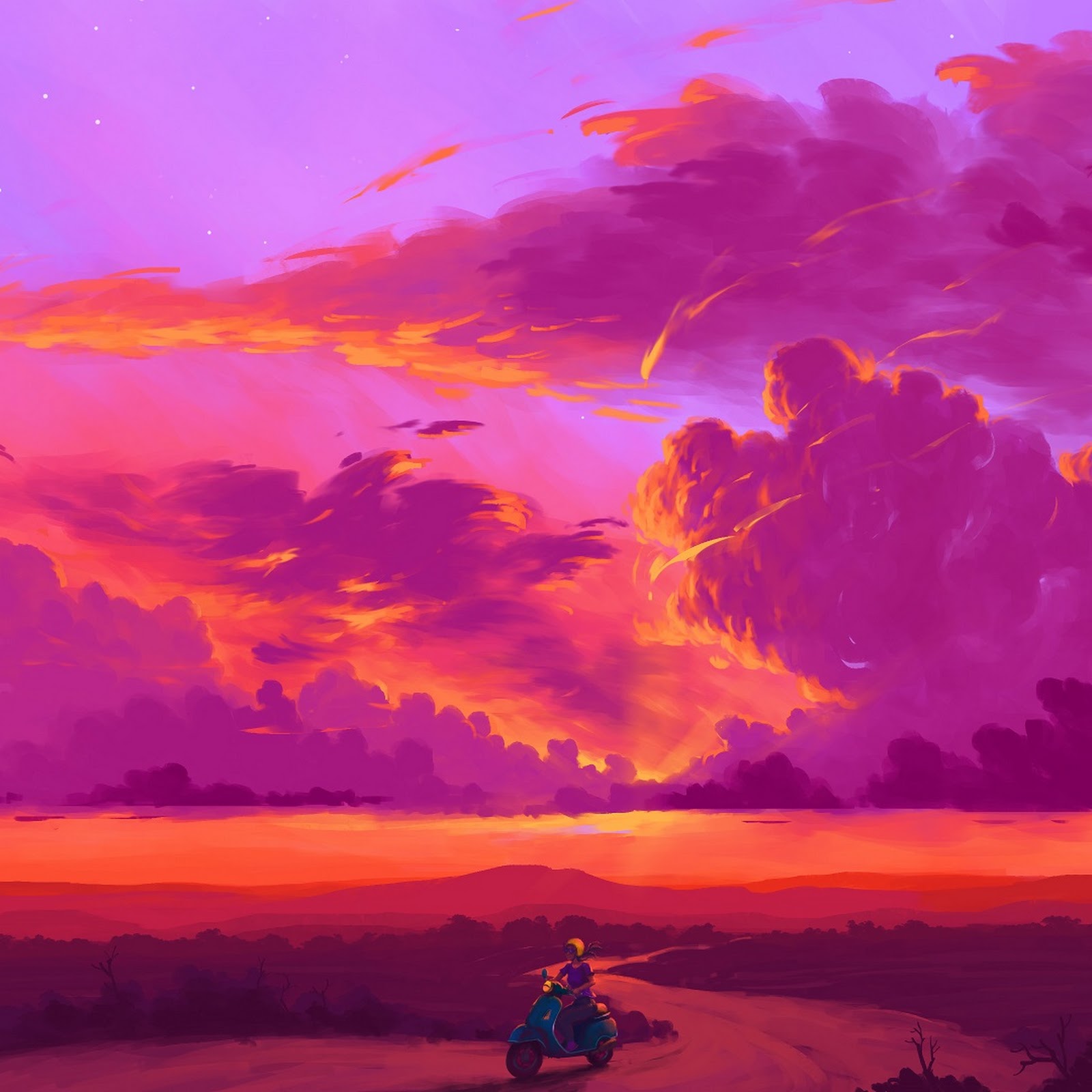 Digital Painting, Landscape, Sky, Clouds, Biker Full HD Desktop and Mobile Wallpaper Background with a maximum resolution of 1920x1080 px.