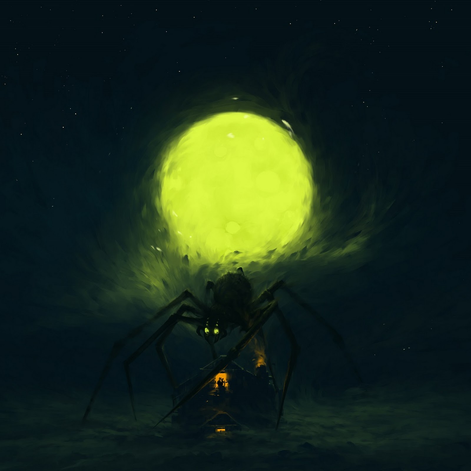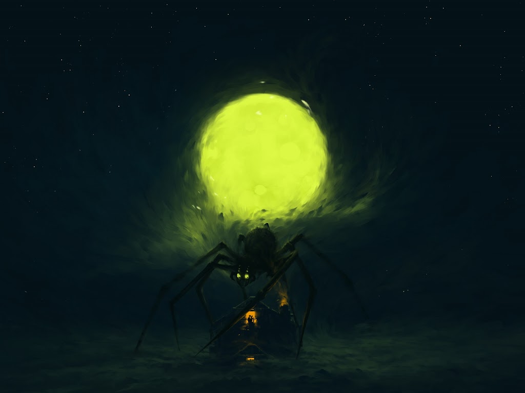 Digital Painting, Night, Moon, Horror, Arachnid Full HD Desktop and Mobile Wallpaper Background with a maximum resolution of 1920x1080 px.