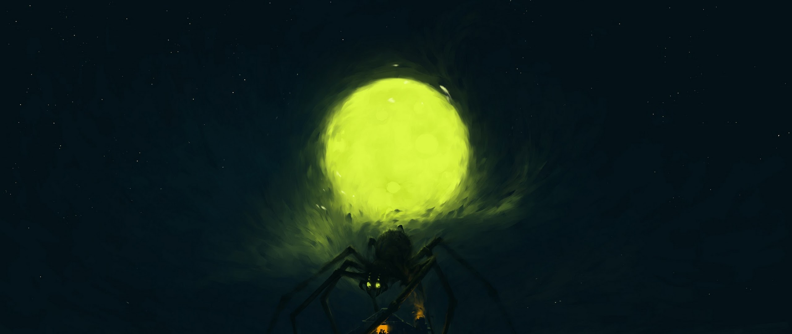 A Stunning Digital Painting, Night, Moon, Horror, Arachnid Full HD Desktop and Mobile Wallpaper Background (1920x1080)