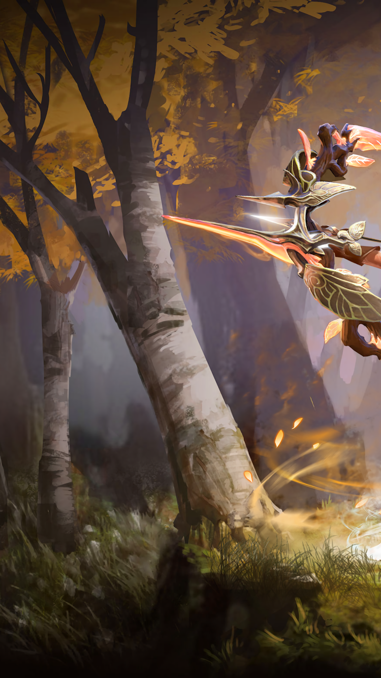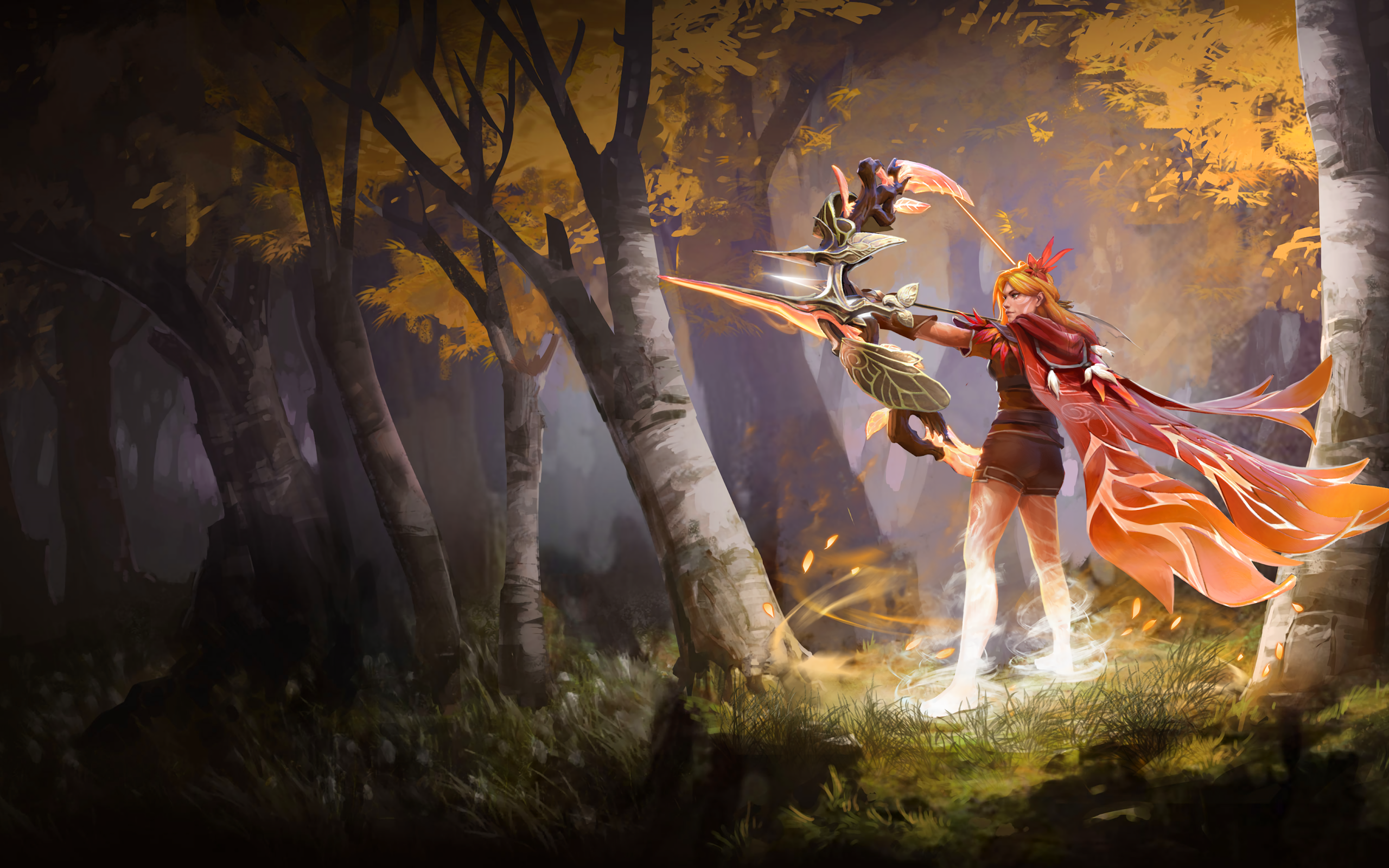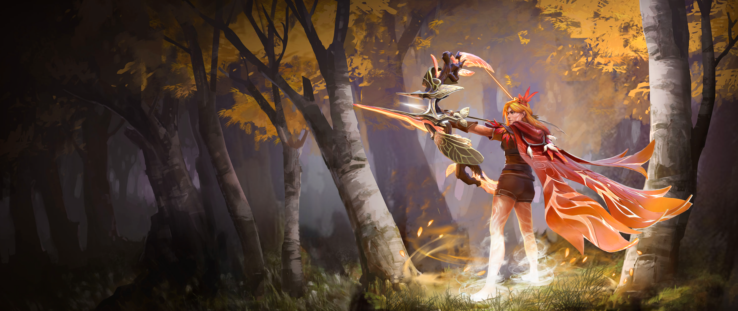 Dota 2, Windranger, Trees, Grass, Bow And Arrow 4K Desktop and Mobile Wallpaper Background with a maximum resolution of 4096x2160 px.