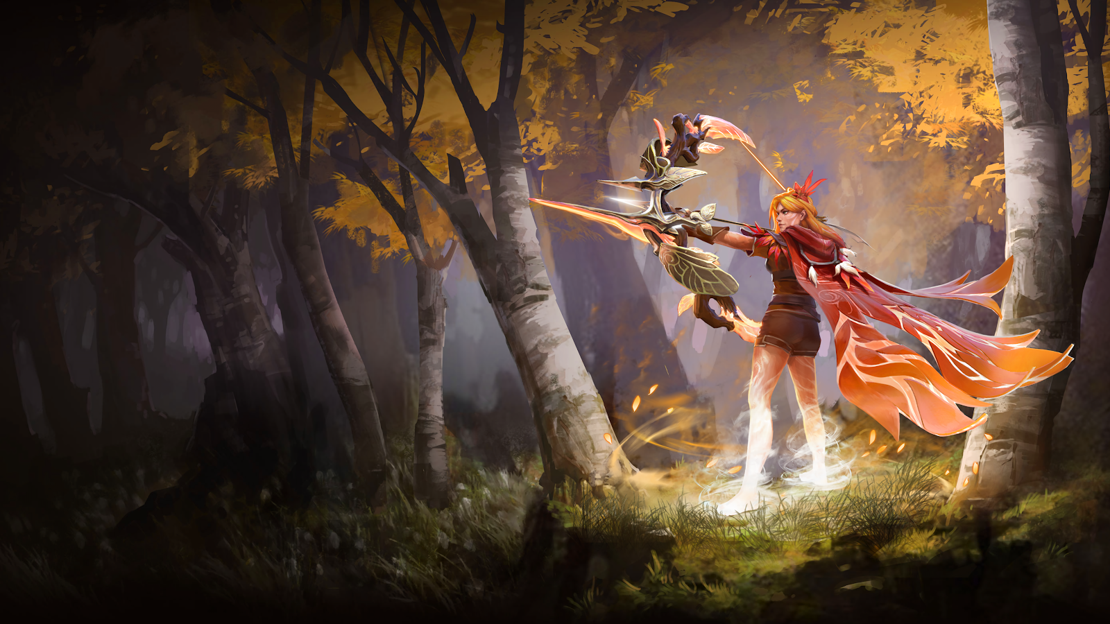 Dota 2, Windranger, Trees, Grass, Bow And Arrow 4K Desktop and Mobile Wallpaper Background with a maximum resolution of 4096x2160 px.