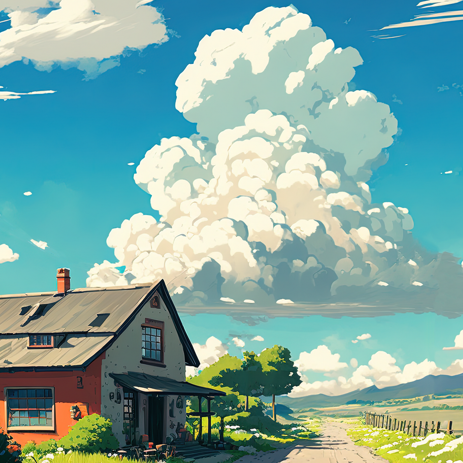 Landscape, Clouds, Path, House, Uomi Full HD Desktop and Mobile Wallpaper Background with a maximum resolution of 1998x1333 px.
