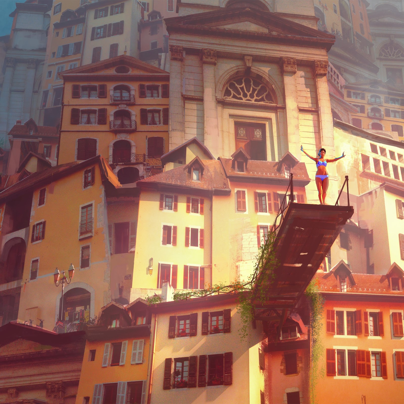 Marc Simonetti, Sunlight, Building, Vintage, Digital Art 4K Desktop and Mobile Wallpaper Background with a maximum resolution of 3840x2160 px.