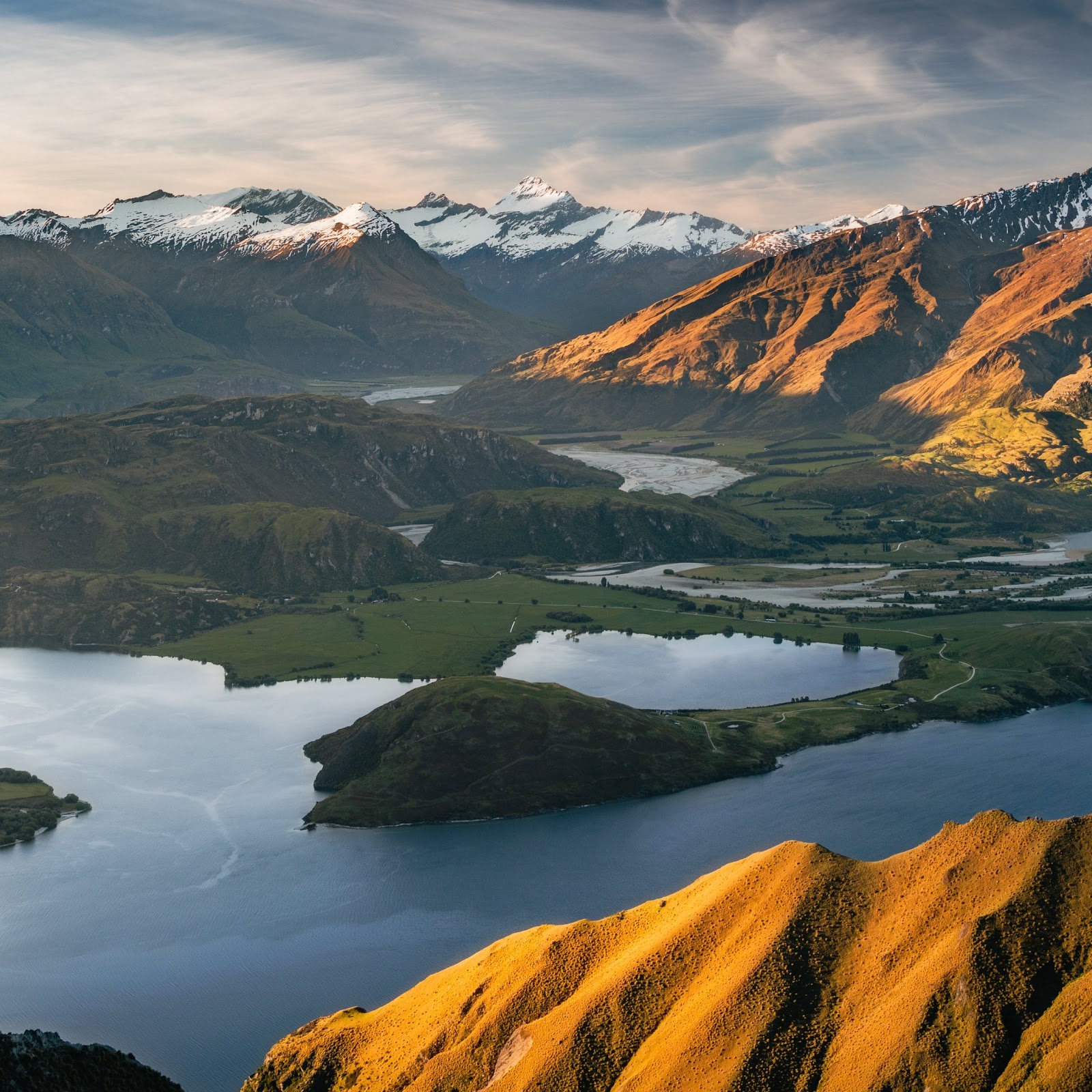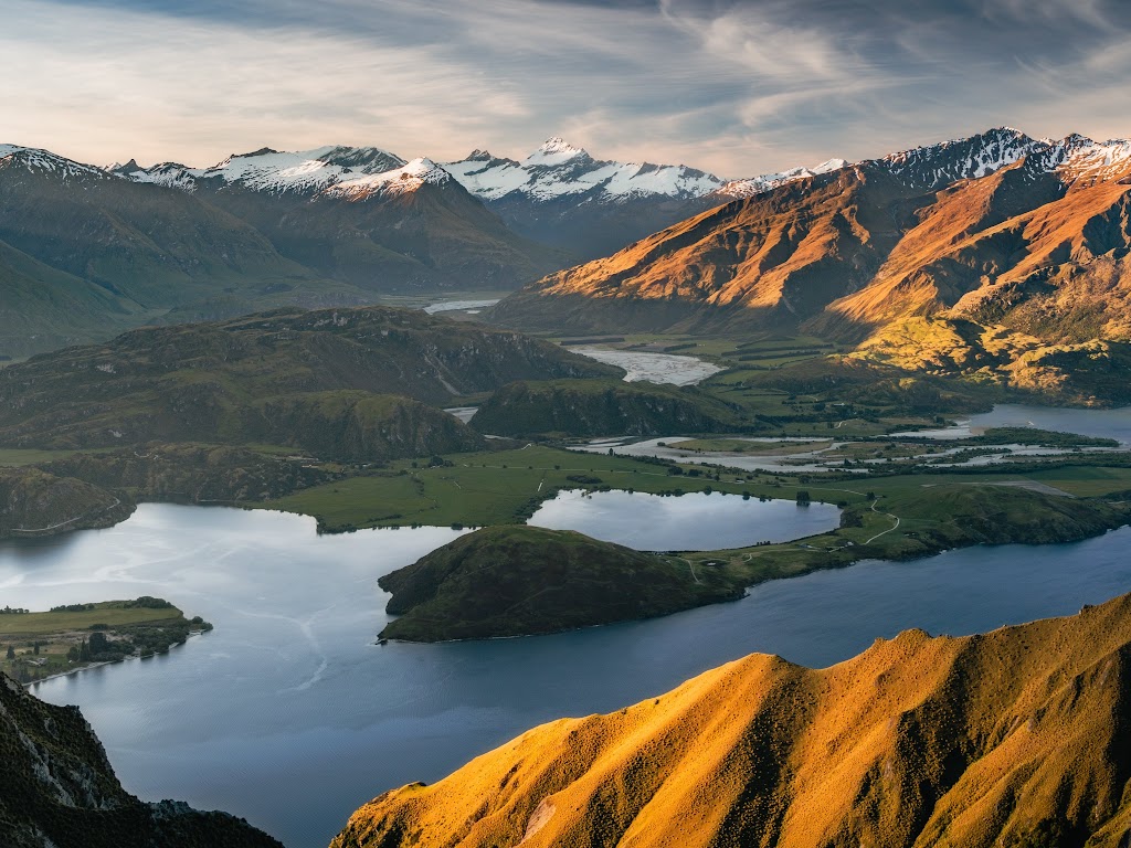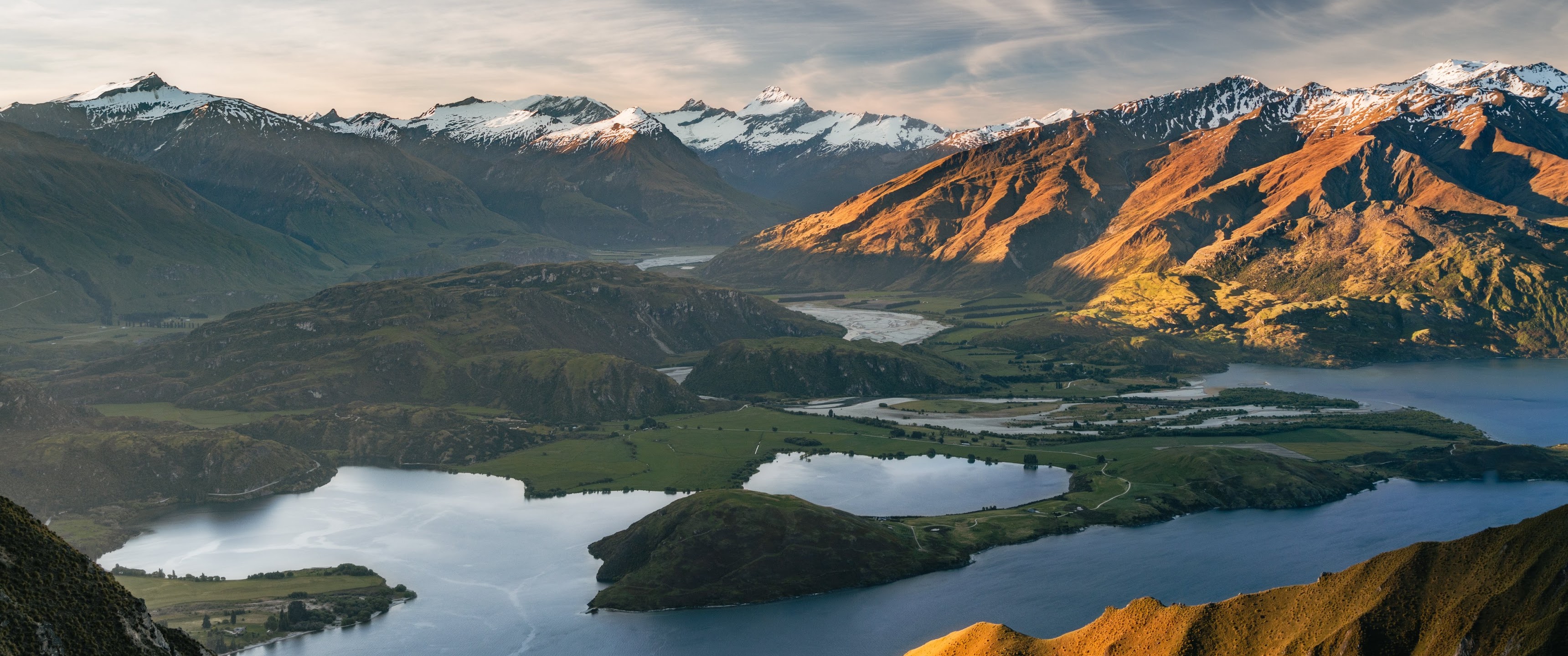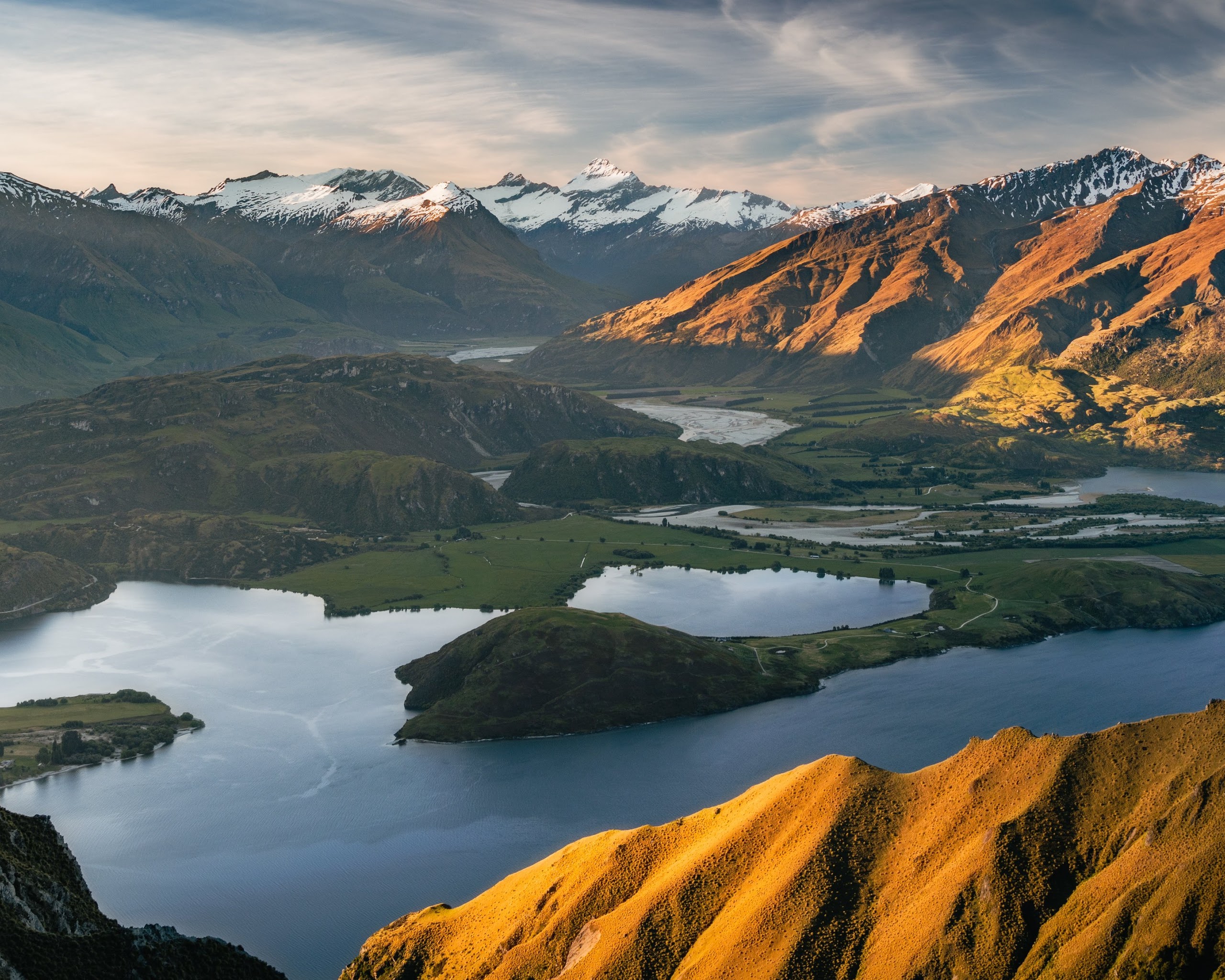 Mountains, Landscape, Snowy Mountain, Lake, Sunset 4K Desktop and Mobile Wallpaper Background with a maximum resolution of 4096x2304 px.