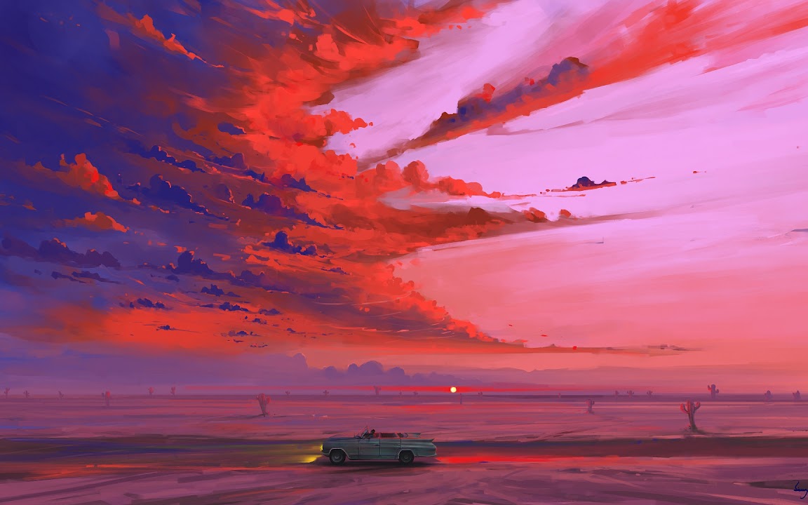 Sunrise, Desert, Car, Road, Cactus Full HD Desktop and Mobile Wallpaper Background with a maximum resolution of 1920x1080 px.