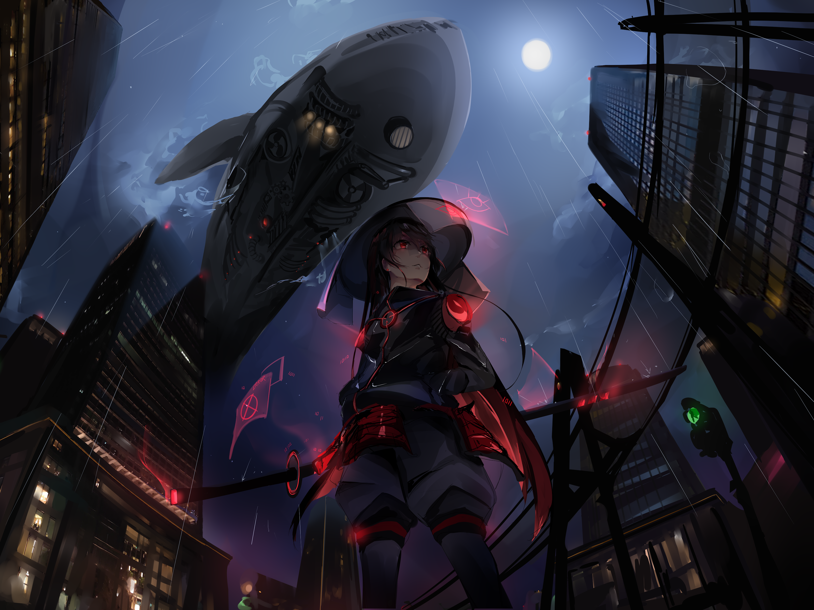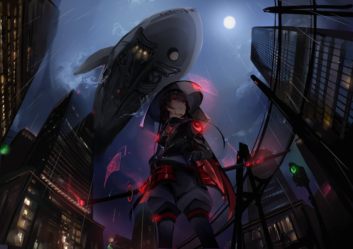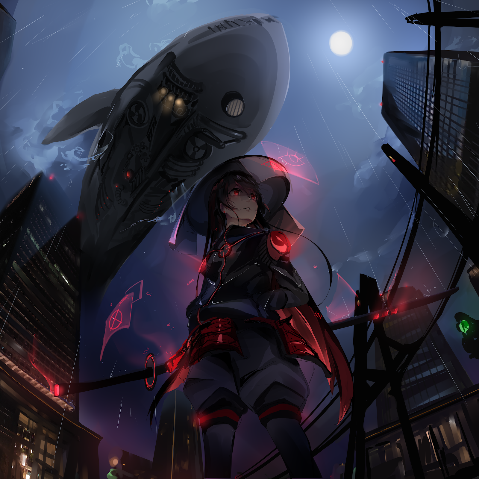 Sword, Katana, Moon, Weapon, Zeppelin 8K Desktop and Mobile Wallpaper Background with a maximum resolution of 8185x5787 px.