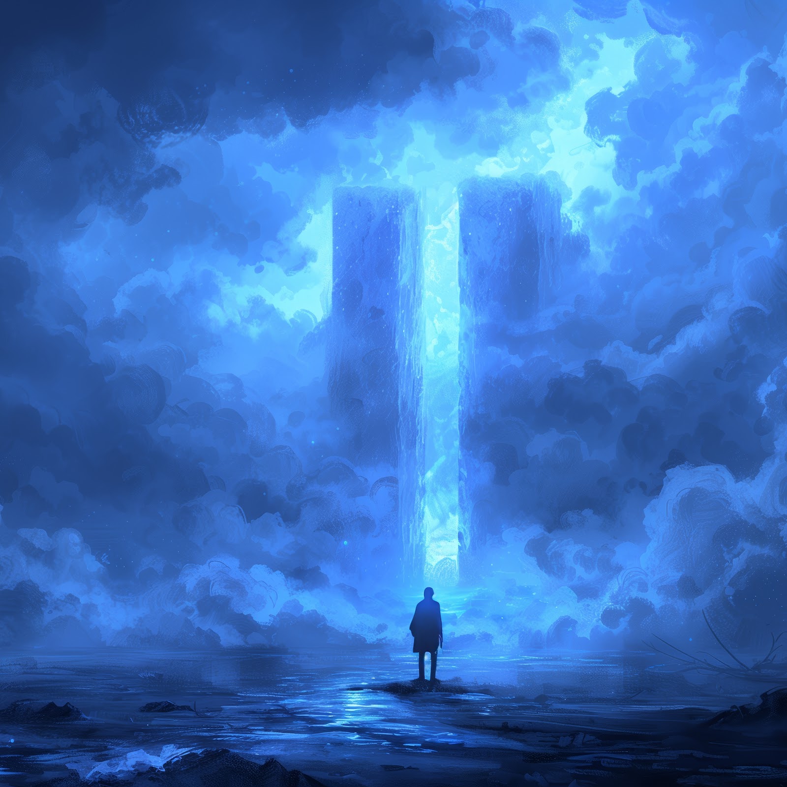 Ai Art, Illustration, Column, Blue, Smoke 5K Phone Wallpaper
