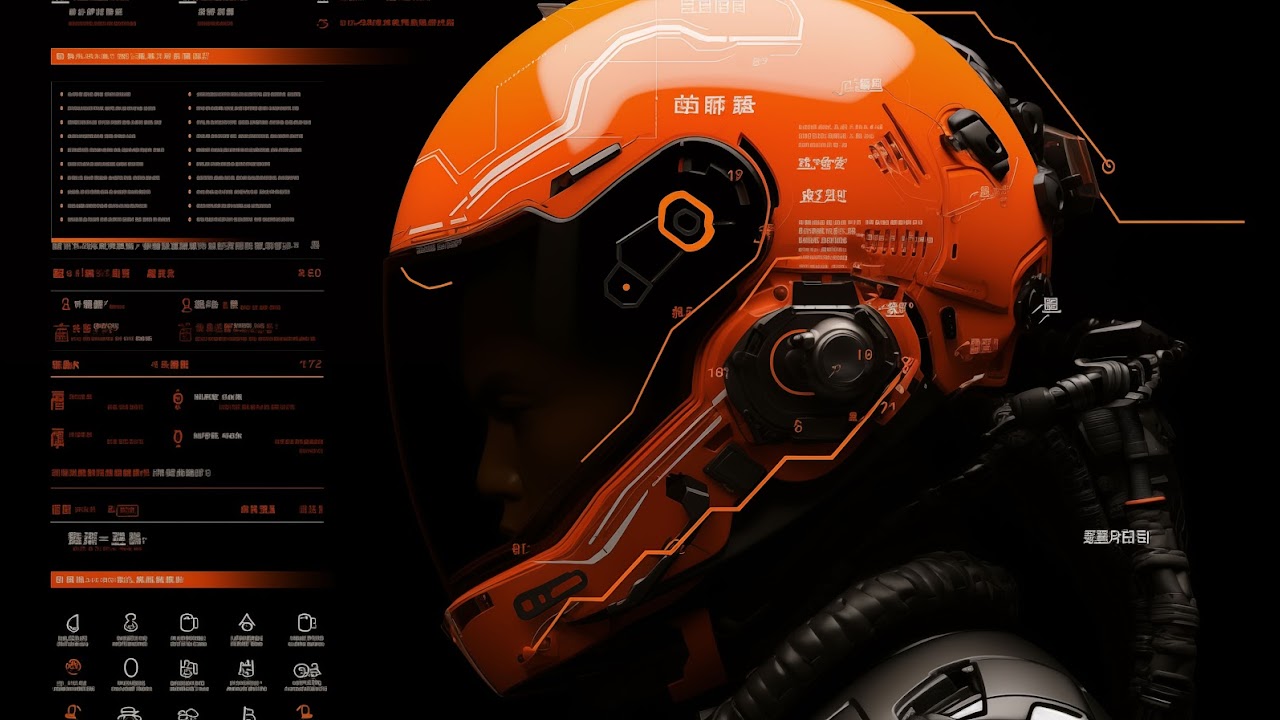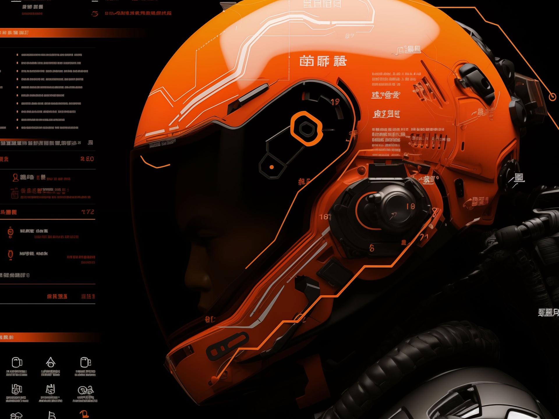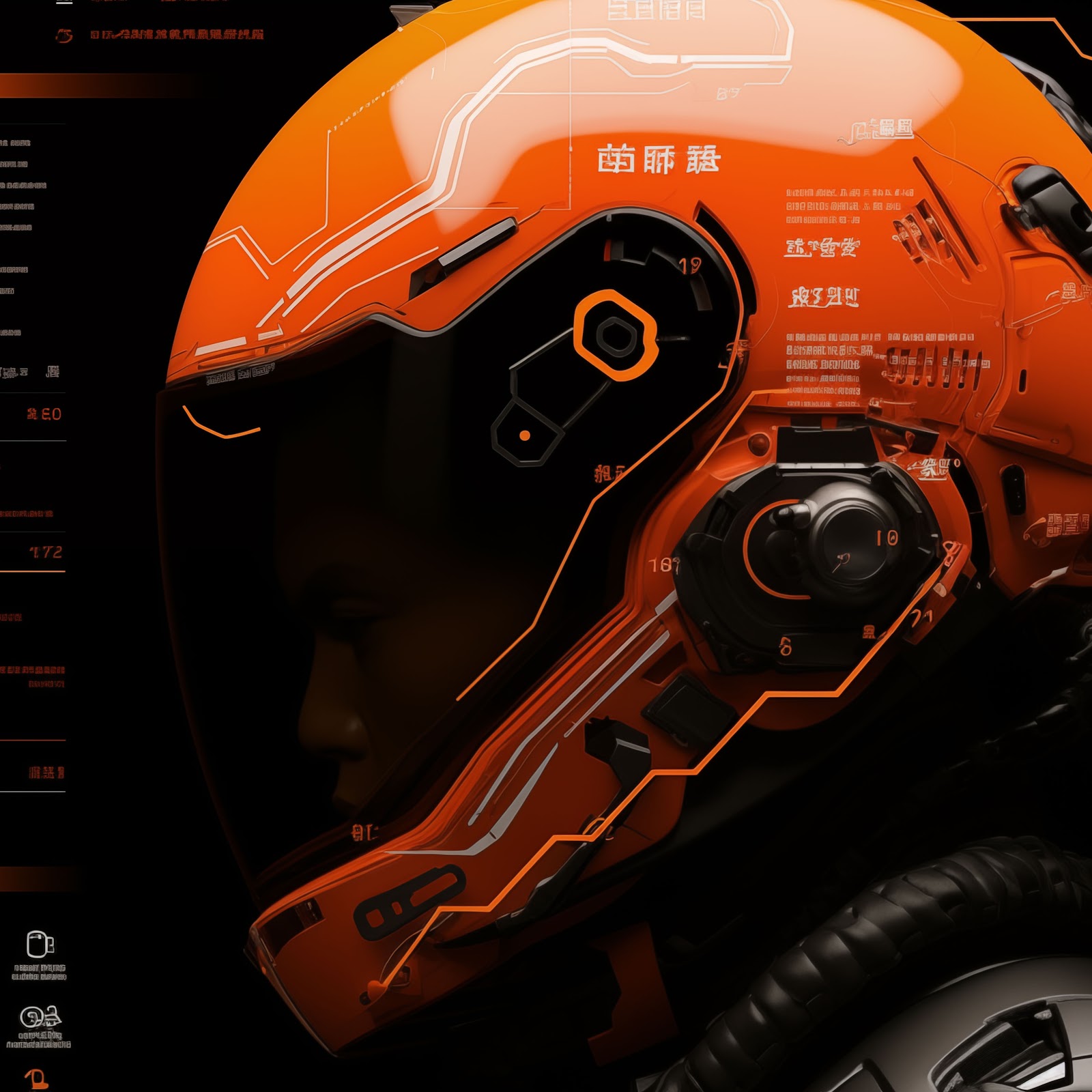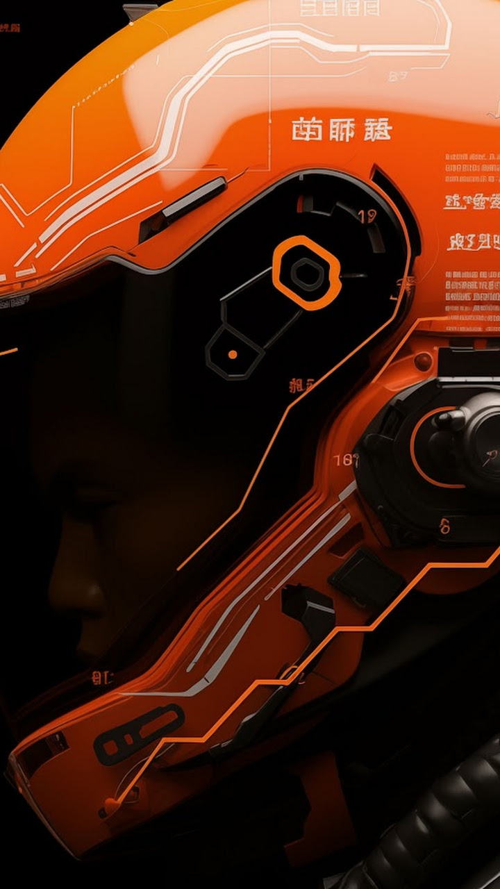 Ai Art, Japanese, Helmet, Symbols, Orange 5K Desktop Wallpaper