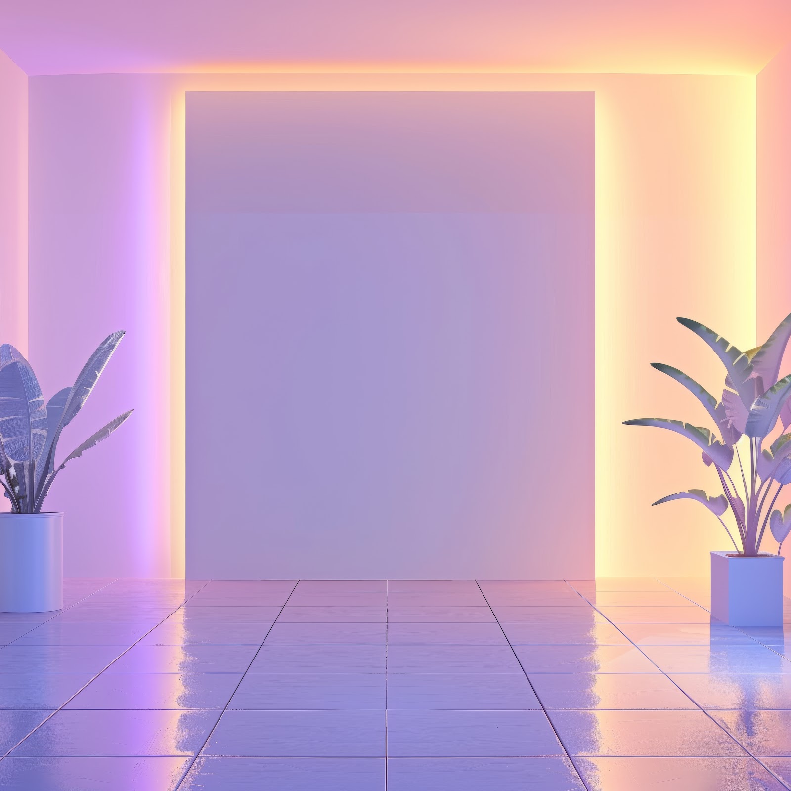 Neon, Plants, Interior, Minimalist 5K Desktop and Mobile Wallpaper Background with a maximum resolution of 5824x3264 px.